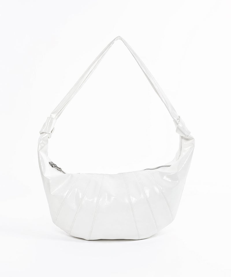光沢感のある大容量収納クロスショルダーバッグ。ショルダー部分を太めに設定されていることで負担軽減されます。幅広いコーデに合わせやすいシンプルなデザイン。