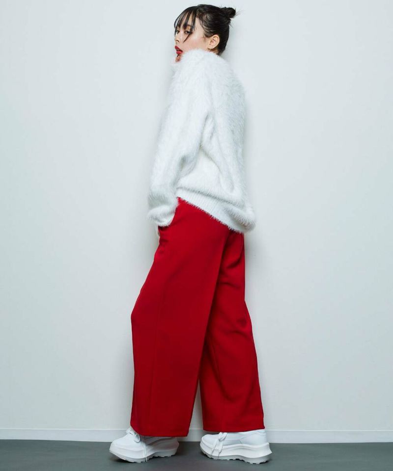 ゆったりな穿き心地のワイドシルエットで、気になるレッグラインをカバーできるパンツ。センタープレスが入っていることで楽に綺麗見せしてくれるアイテム。肌寒い季節に嬉しい裏起毛を採用しています。