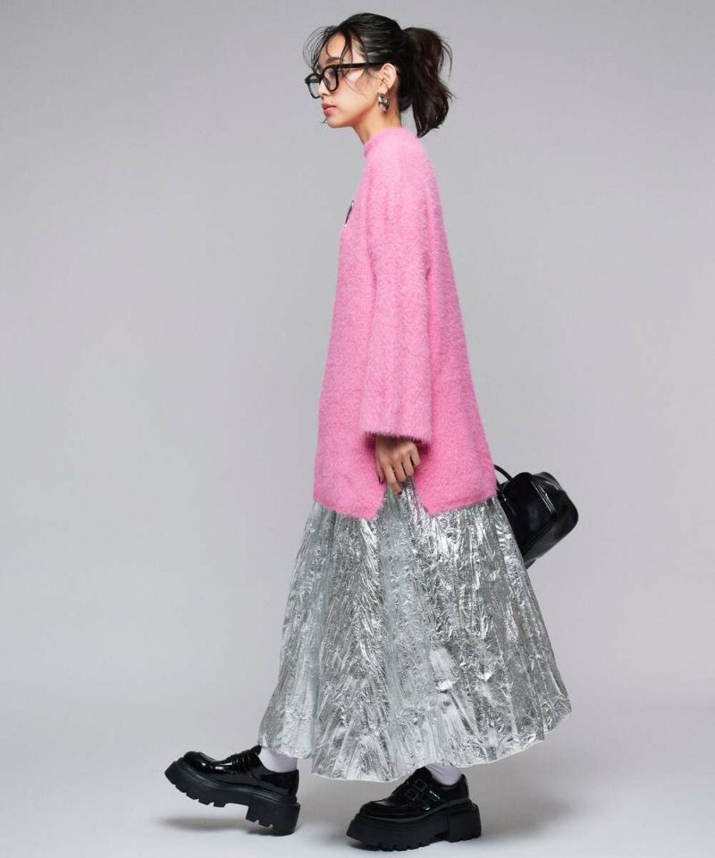 Narcissus人気アイテムのバルーンデザインに、メタリック素材が登場。女性らしいバルーンデザインに、メタリック素材を採用することでモード感をプラス。ベーシックなトップスとスタイリングするだけで、一気にお洒落上級者に。重くなりがちな秋冬に大活躍し、オールシーズンを通してコーディネートのポイントとなります。楽に着脱できるよう総ゴムを使用。 【model】H160 B80 H85/H165 B78 H83