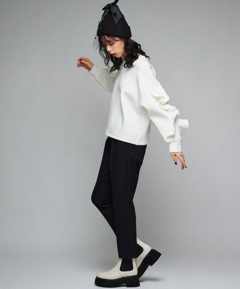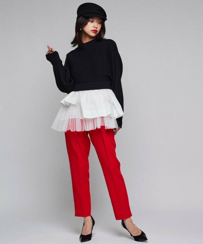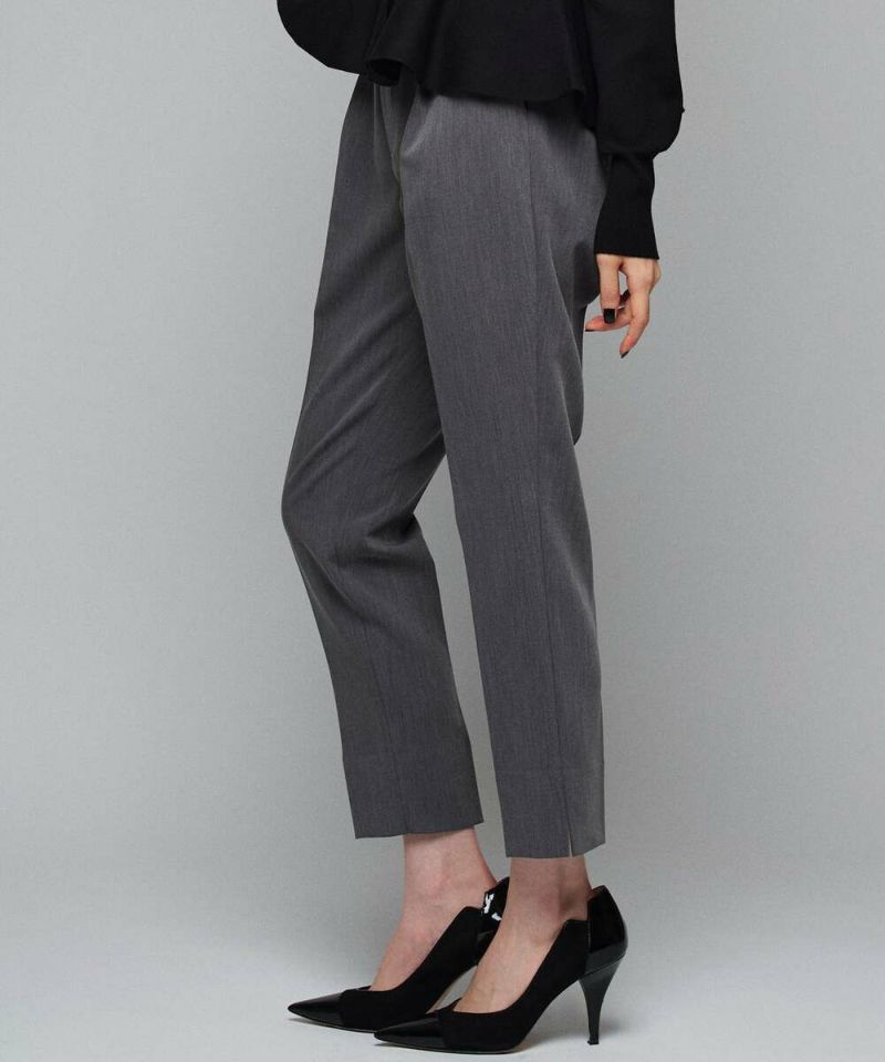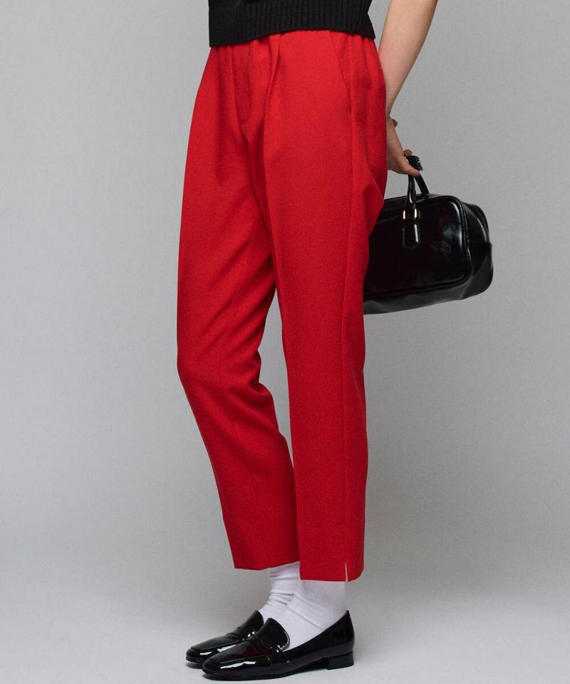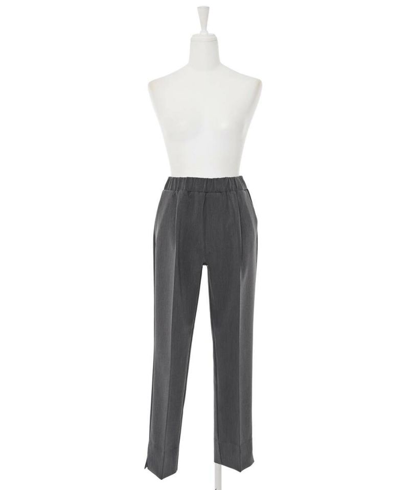 カジュアルでも、綺麗めでもシーンを問わず着まわせる 上品で大人っぽく決まるアイテム。ウエスト部分はゴムで、風通しも良く着心地の良い万能アイテム。センタープレスが脚長効果を期待。さりげないサイドスリットもポイント。【model】H165 B78 H83