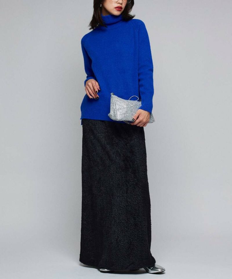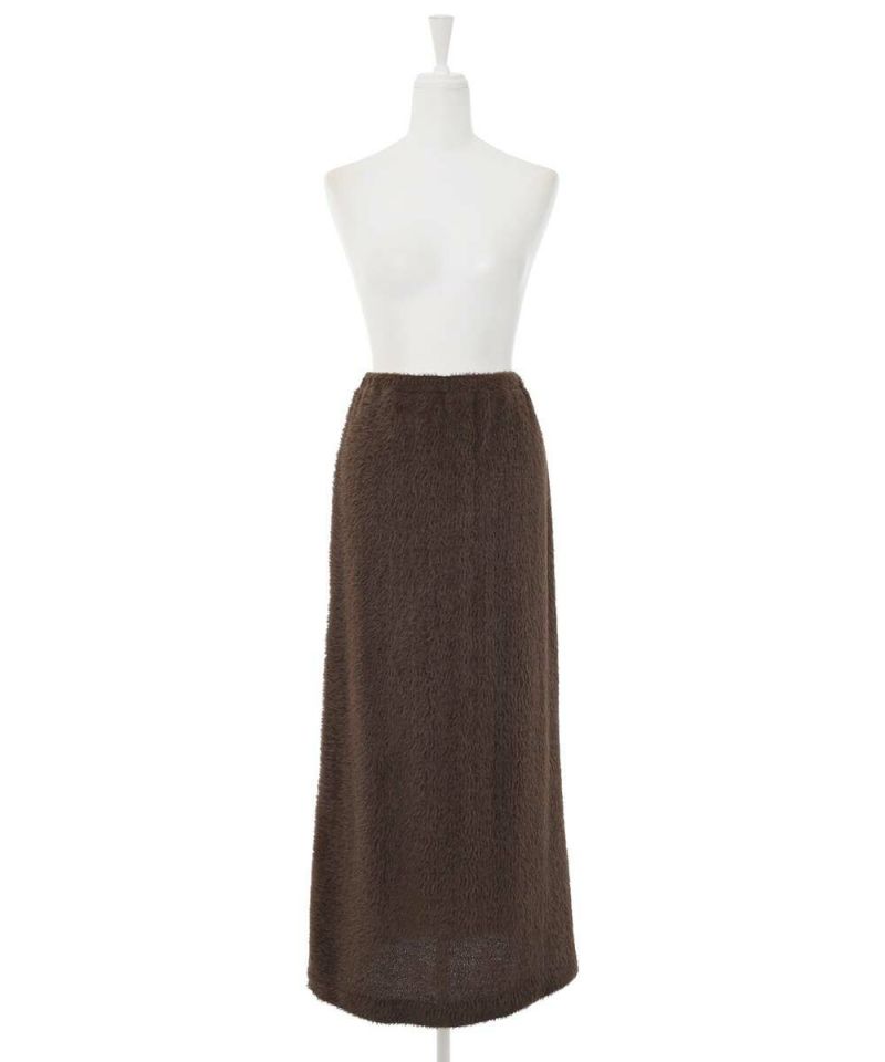 季節感漂うファー素材のロングスカート。綺麗めな雰囲気を持ちながら、デイリーにもカジュアルにも使えるデザイン。気になる部分をさりげなくカバーしてくれる緩めのIラインシルエット。【model】:H163 B78 H84 / H165 B78 H83