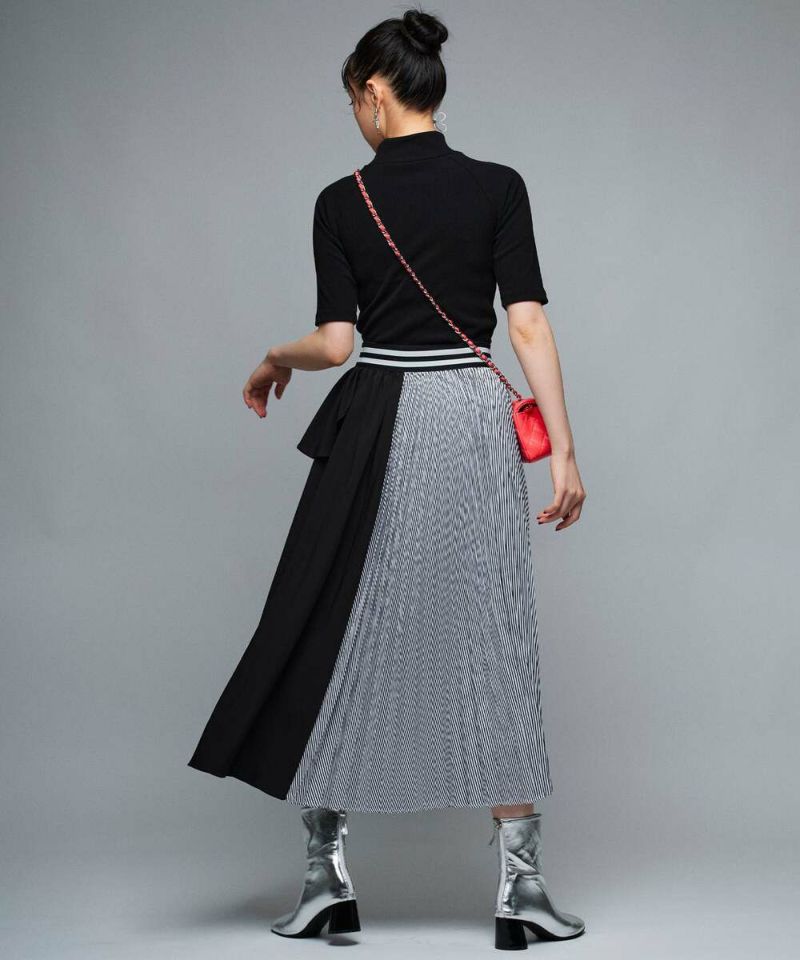 フリル&プリーツ加工のアシンメトリーデザインが目を惹き、スタイリングを華やかにしてくれるロングスカート。ベーシックなトップスと合わせるだけで、お洒落度アップ。ストレスフリーに着用できるウエストゴムを採用。【model】H165 B78 H83