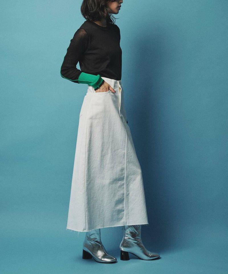 ■ POINT程よくタイトで体のラインを拾わない女性らしい絶妙なシルエット。カジュアルにもきれいめにも使えるデニムロングスカート。裾の断ち切りデザインで抜け感も演出。厚すぎない生地感でオールシーズン活躍いただけます。深すぎないバックスリットで品のある印象に。また足さばきも良く普段使いにもおすすめです。■ STYLINGトップスを替えるだけで、シーズンレスで活躍してくれるのも嬉しいポイント。トップスはインでもアウトでもバランスが取りやすく、着回し抜群。足もとは、ヒールやスニーカーなど様々なスタイルと合うので毎日のお洒落を楽しんでいただけます。モデル身長:156cm