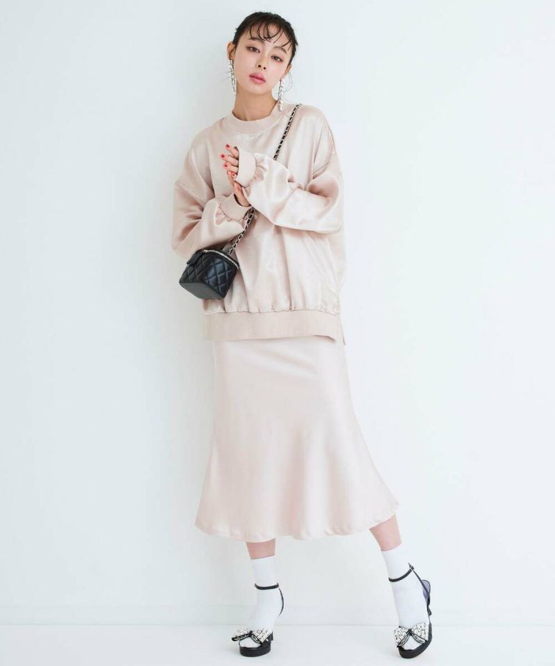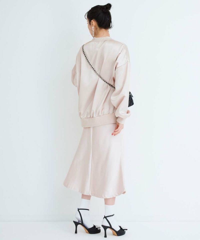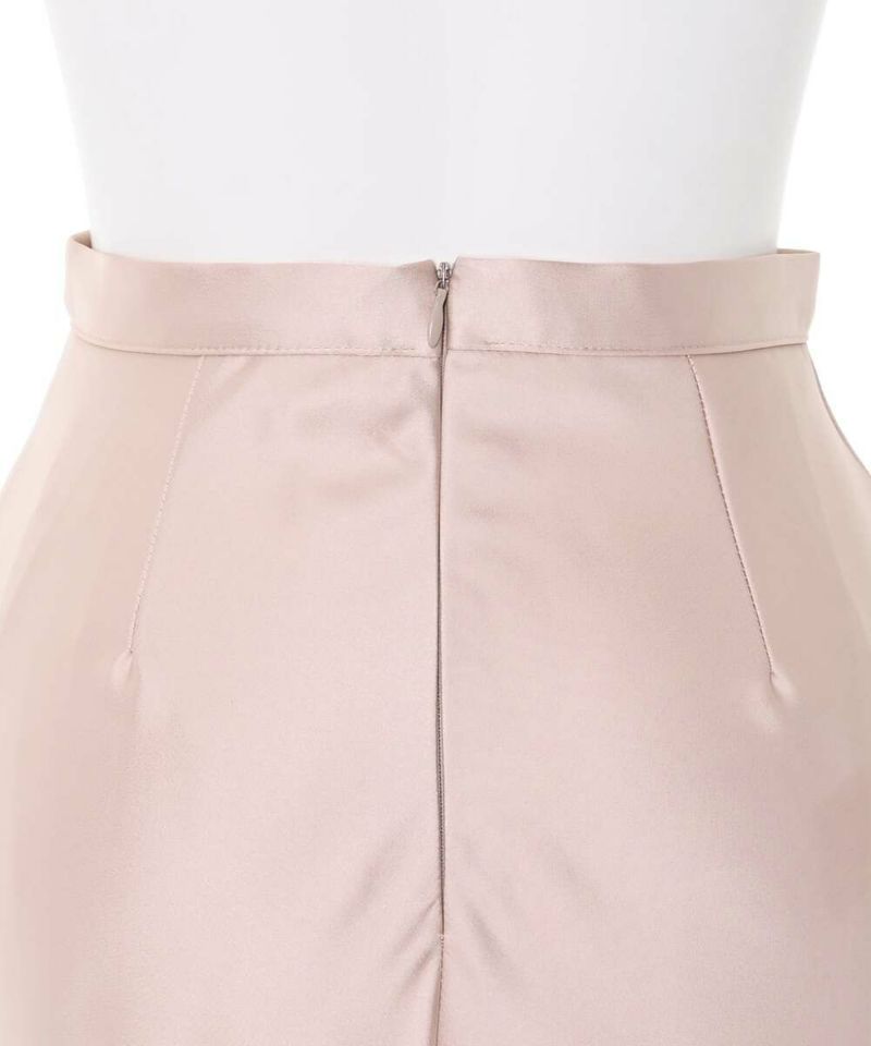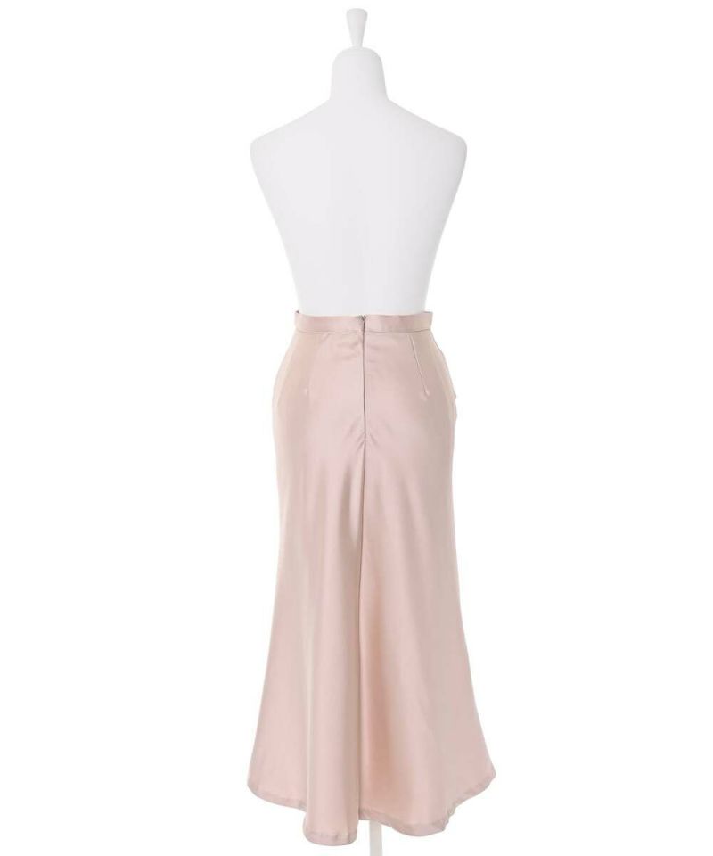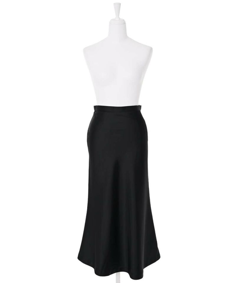裾に向けてさりげなく広がるシルエットが綺麗なフレアスカート。動くたびに程よく現れるドレープと、落ち着いたマットサテンの輝きが大人のレディコーデのポイントに。【model】:H165 B78 H83 / H163 B78 H84