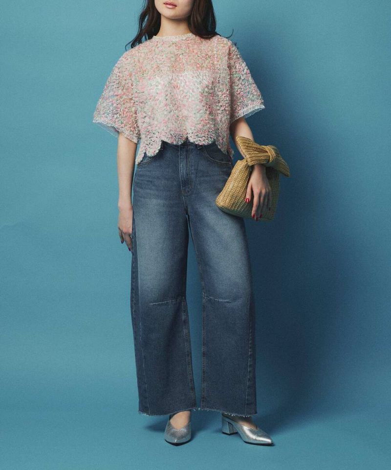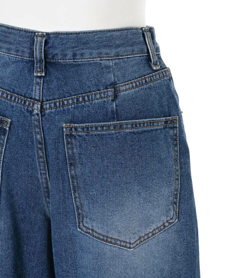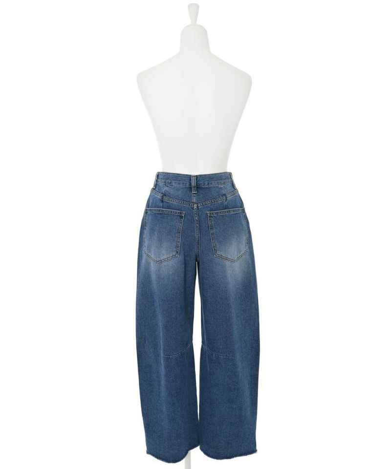 ■ POINT立体的なカーブシルエットで、旬のレッグラインを描くデニムパンツ。程良くゆるさとボリュームを出してワイドなのにダボっと見えない大人なシルエット。膝位置の内側にタックを入れることで生まれるカーブラインがヒップや脚をカバー。程よいハイウエストデザインで腰周りもすっきりと魅せてくれます。裾の切りっぱなしと色落ちがヴィンテージライクなこなれ感を演出。■ STYLINGいつものスタイルが垢抜けるトレンド感のあるシルエット。シンプルコーデが今っぽくなる主役級のデニム。濃いめのブルーデニムがカジュアル過ぎない大人な印象。ロゴTやカットソーで合わせても大人モードに。きれいめなトップスと合わせた旬なスタイルもおすすめ。【model】H165 B78 H83/156cm
