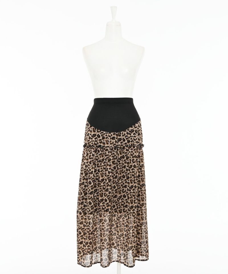 シーズンライクでインパクトのあるレオパード柄プリントが目を惹くロングスカート。ウエスト部分は、インナーにゴムとボタンが採用されていることで調節可能に。切り替えデザインで、ウエストから腰回りは伸縮性に長けている素材感が使用されていてストレスフリーに着用していただけます。【model】H160 B80 H85