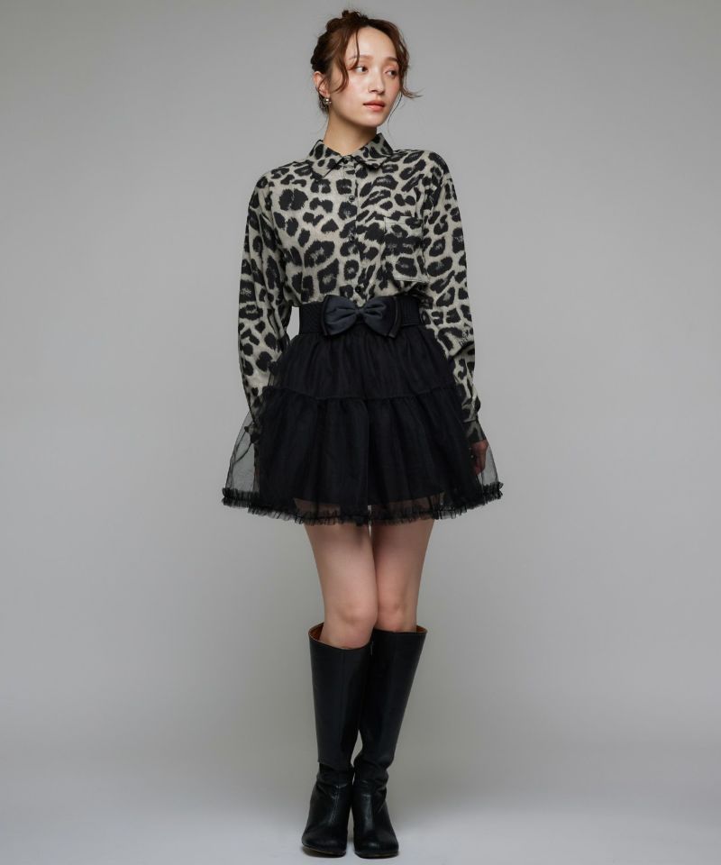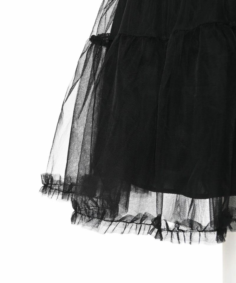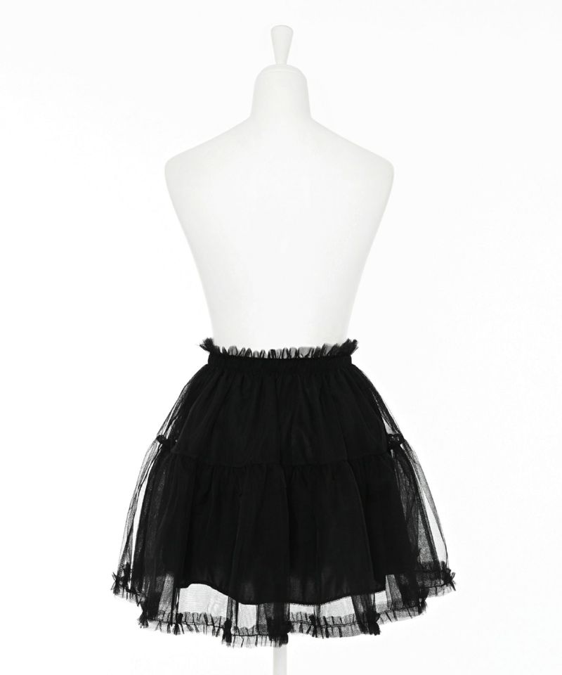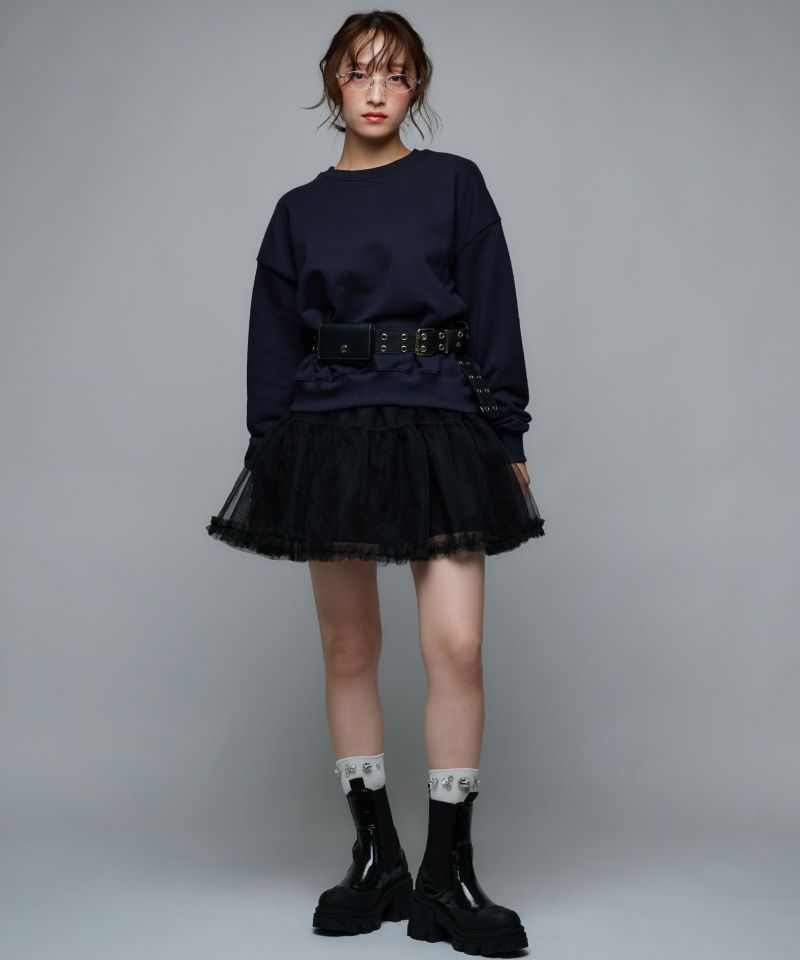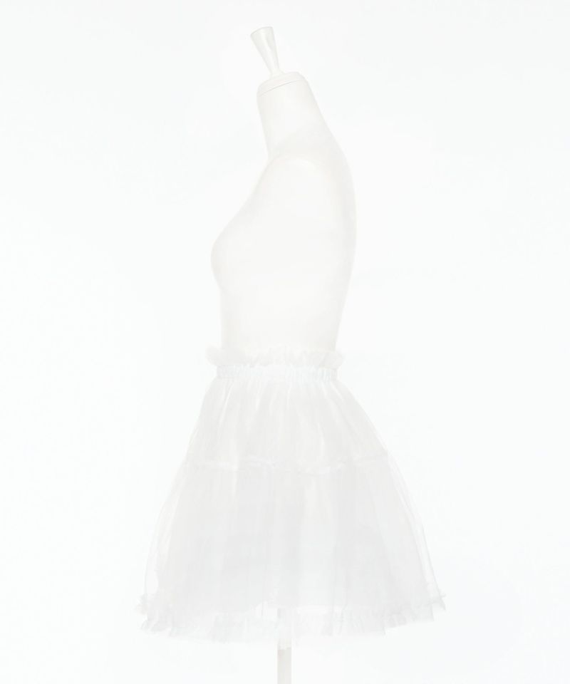 ボリュームたっぷりのシアーチュールが可愛らしいミニスカート。華奢見えを叶えるフレアシルエットで、ふわふわのチュール素材を2枚重ねてフェミニンな雰囲気をプラス。ハイウエストデザインなのでインスタイルはもちろん、アウトスタイルでチュールをチラ見せするのもオススメ。