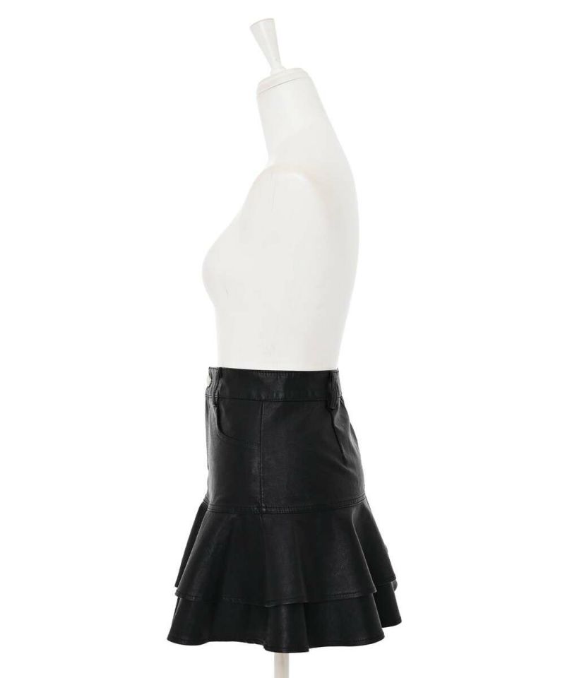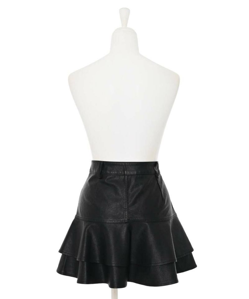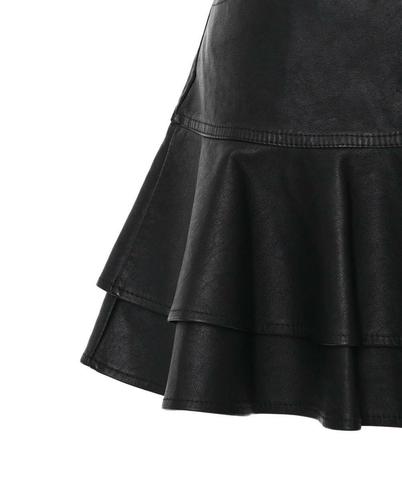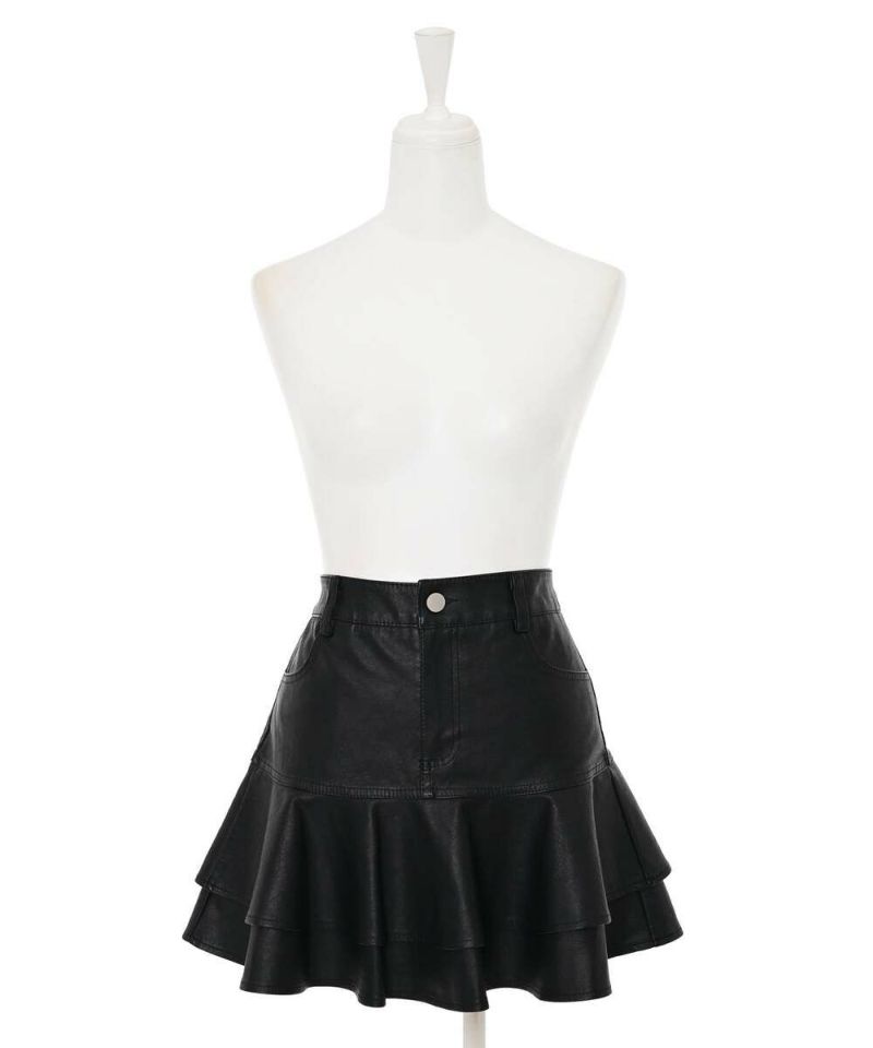 大人気のハイウエスト&フリルデザインが2重になったレザーミニスカート。 幅広いテイストのコーデに合わせられ、1枚あると重宝するアイテム。 インナーパンツ付きで、安心して着用できるのがポイント。【モデル】:H165 B78 H83 / H163 B78 H84
