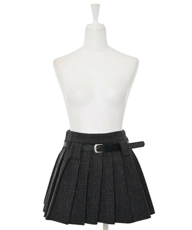 シーズンムード高まる千鳥チェック柄のプリーツスカート。取り外し可能なベルト付きが嬉しいポイント。ミニ丈ながらも、インナーパンツ付きなので安心して着用可能。ハイウエスト仕様で足長効果抜群◎【モデル】:H163 B78 H84 / H165 B78 H83