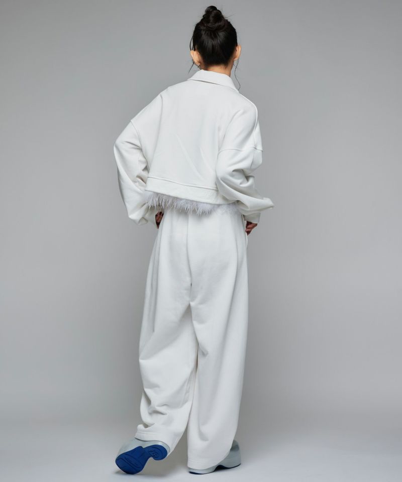 柔らかく適度なふくらみがある素材感で、しなやかな肌触りと快適な着用感を実現。シワになりにくく、気兼ねなく着まわすことができます。ラフに見えがちなスウェットを大人らしく格上げしてくれる質感で、動きやすく軽やかさを兼ね備えたコーディネートに取り入れやすい仕上がり。