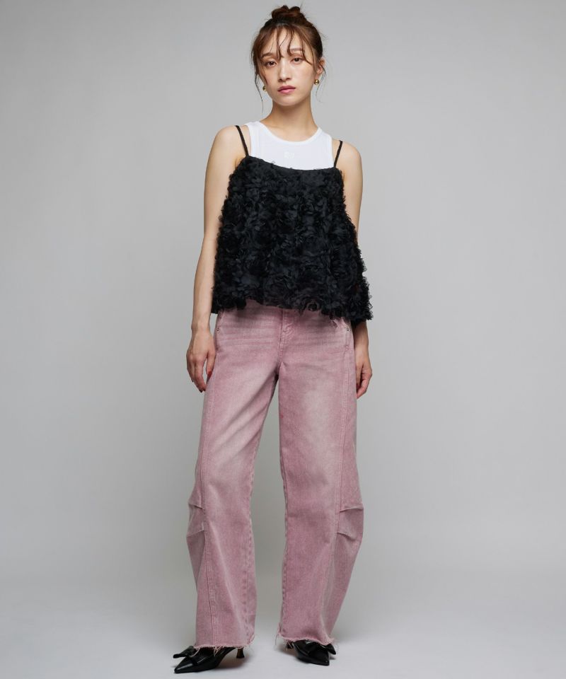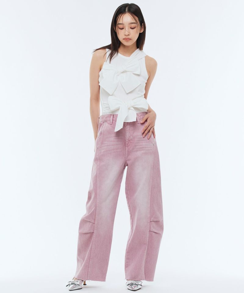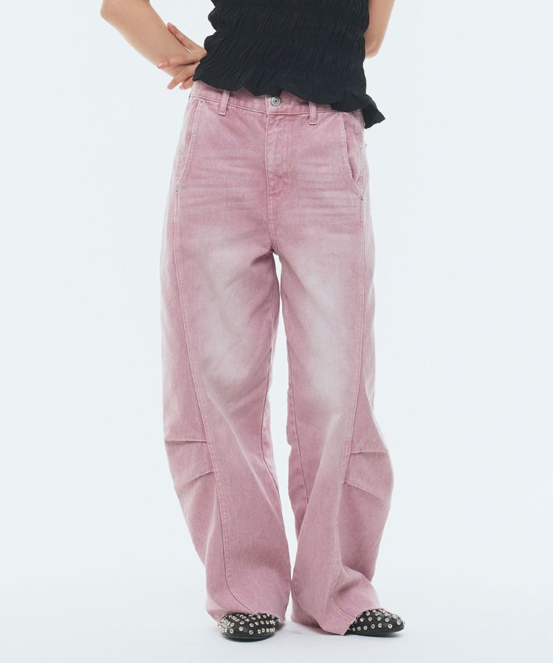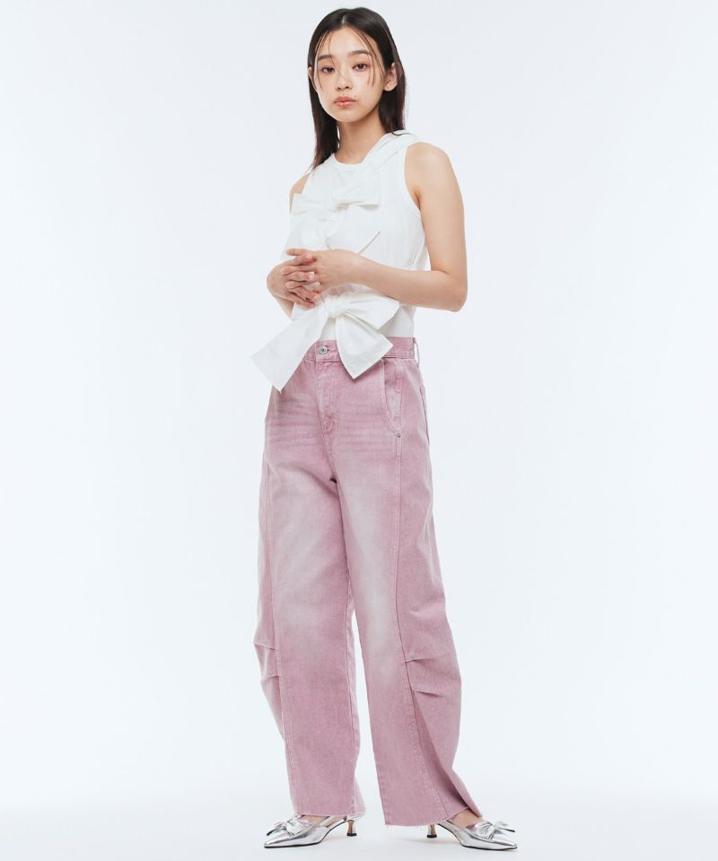 【YENN】"スキ"という感性で繋がる縁を広げていきたい、そんな思いを込めて作り上げる、AGELESSでNEUTRALなワードローブ。成熟した大人の女性が着こなすこなれたCOMFORTABLE STYLEを提案。定番デニムに差をつける、ピンクカラーを使用したパンツ。タックデザインが綺麗なシルエットを出しながらスタイルアップ効果もある、シーズンレスで楽しめる一本。【model】H163 B78 H84