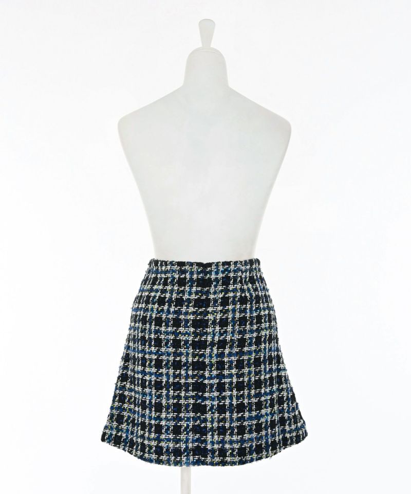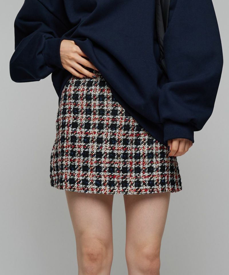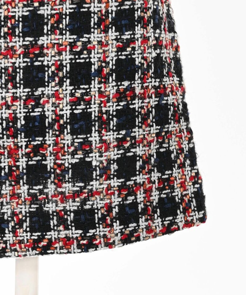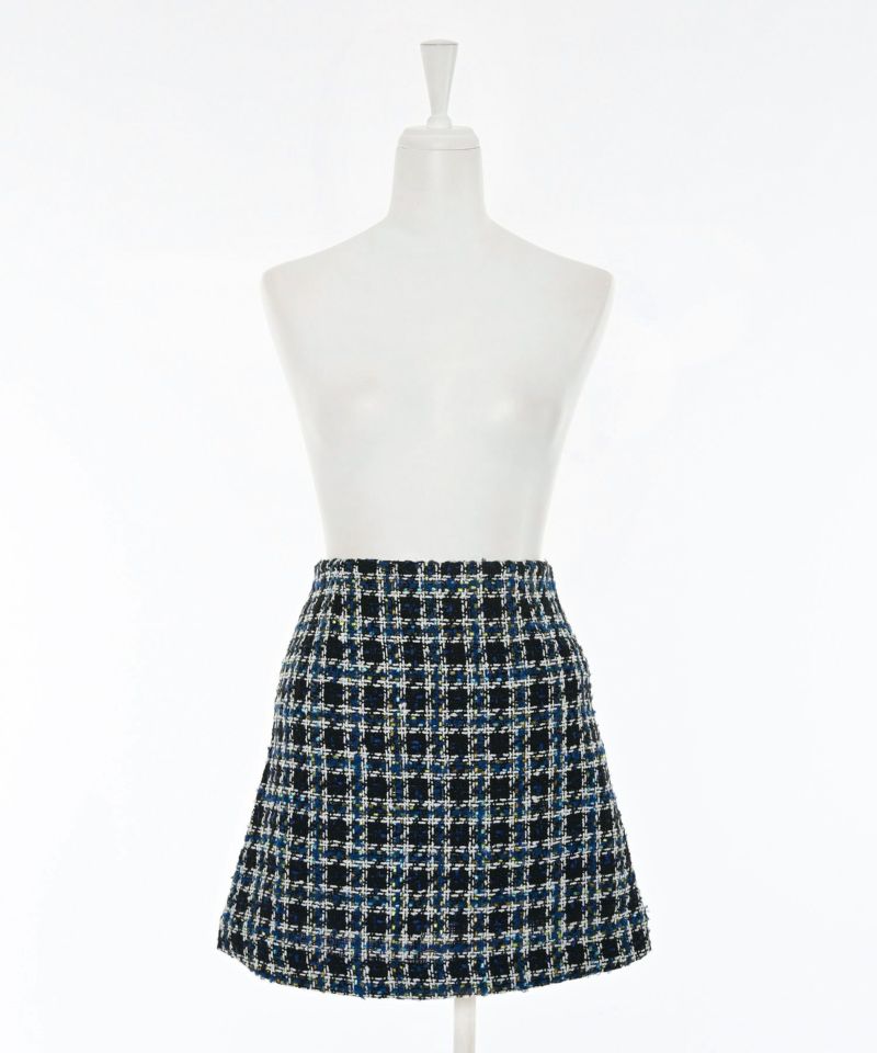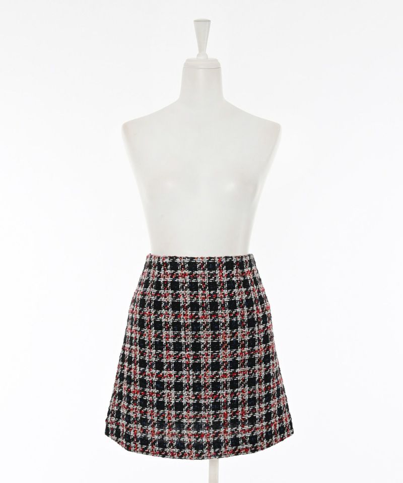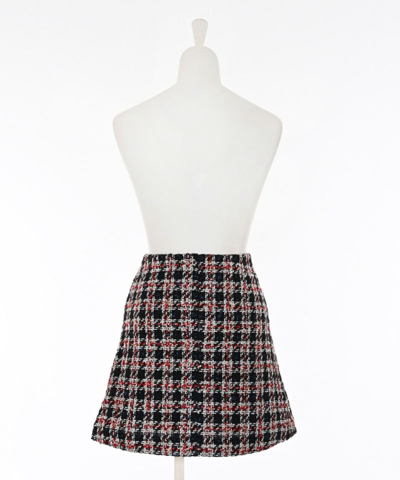 上品に着映えるツイード素材を使用したシーズンムード高まるミニスカート。織り交ぜたカラー使いが装いに華やかさをプラスします。インナーパンツ付きでミニ丈でも安心して着用可能。