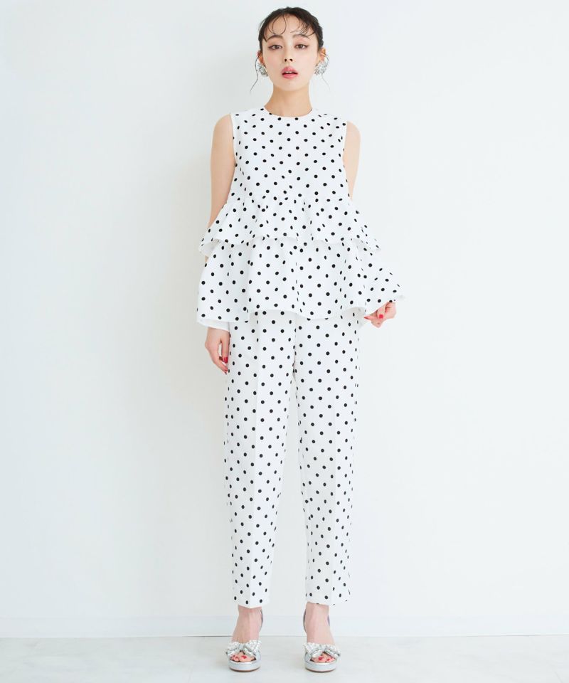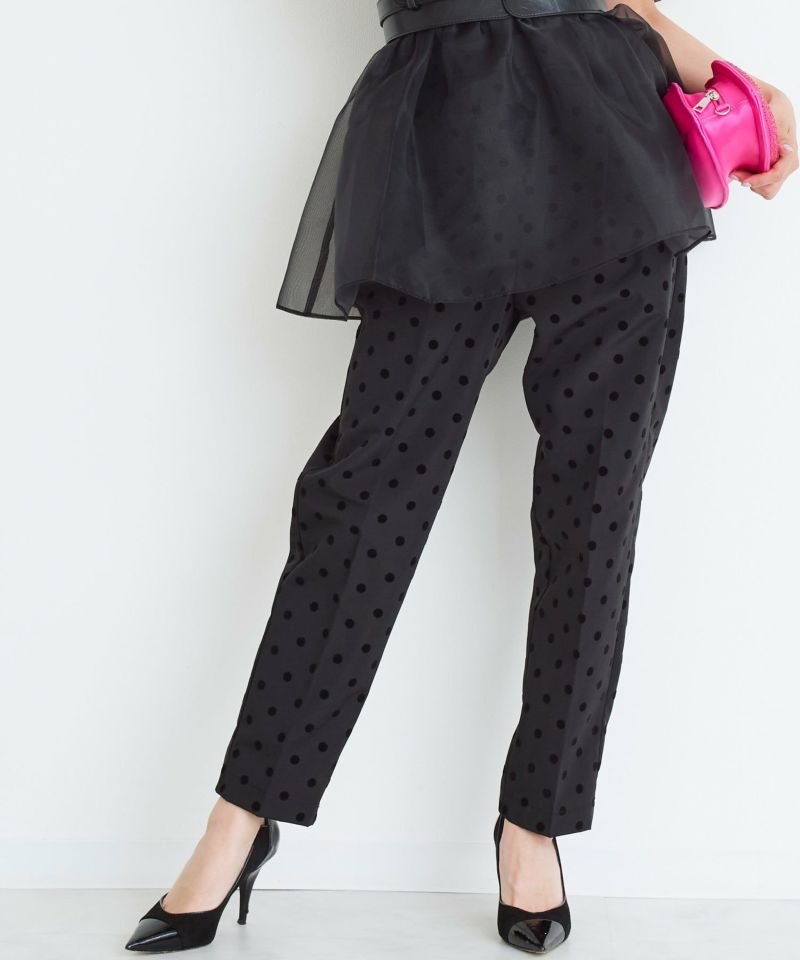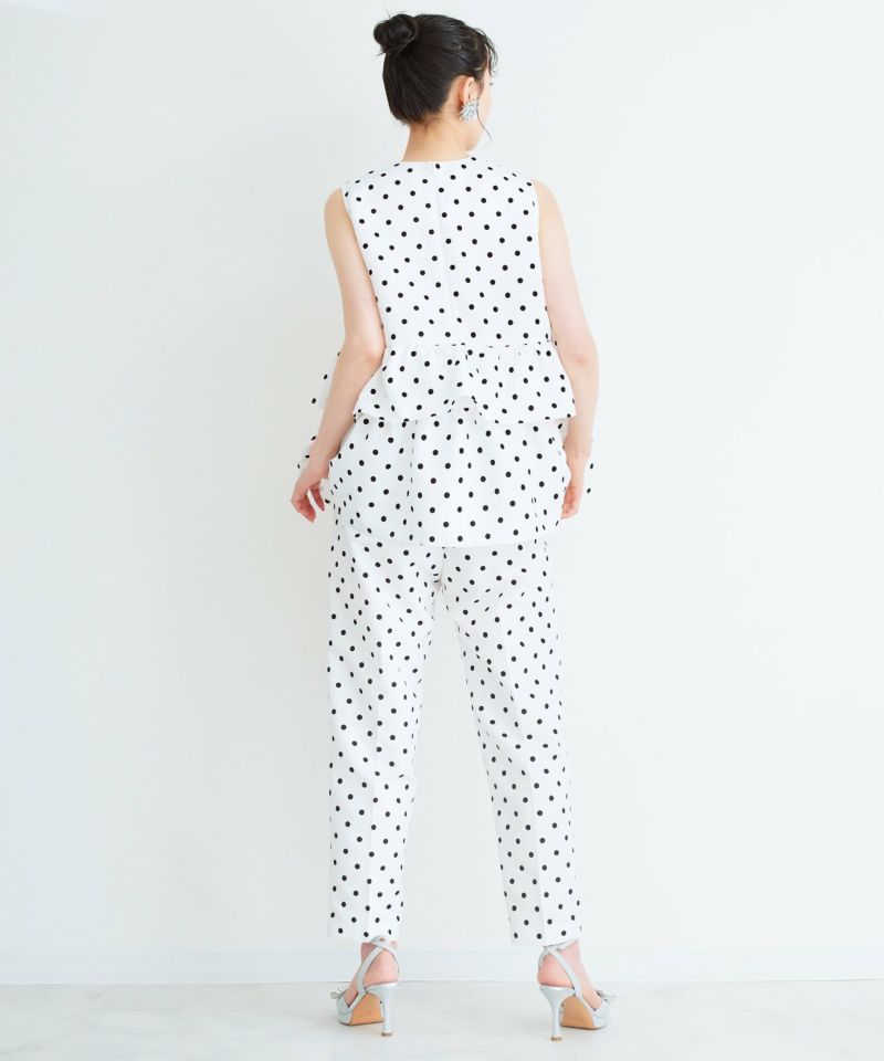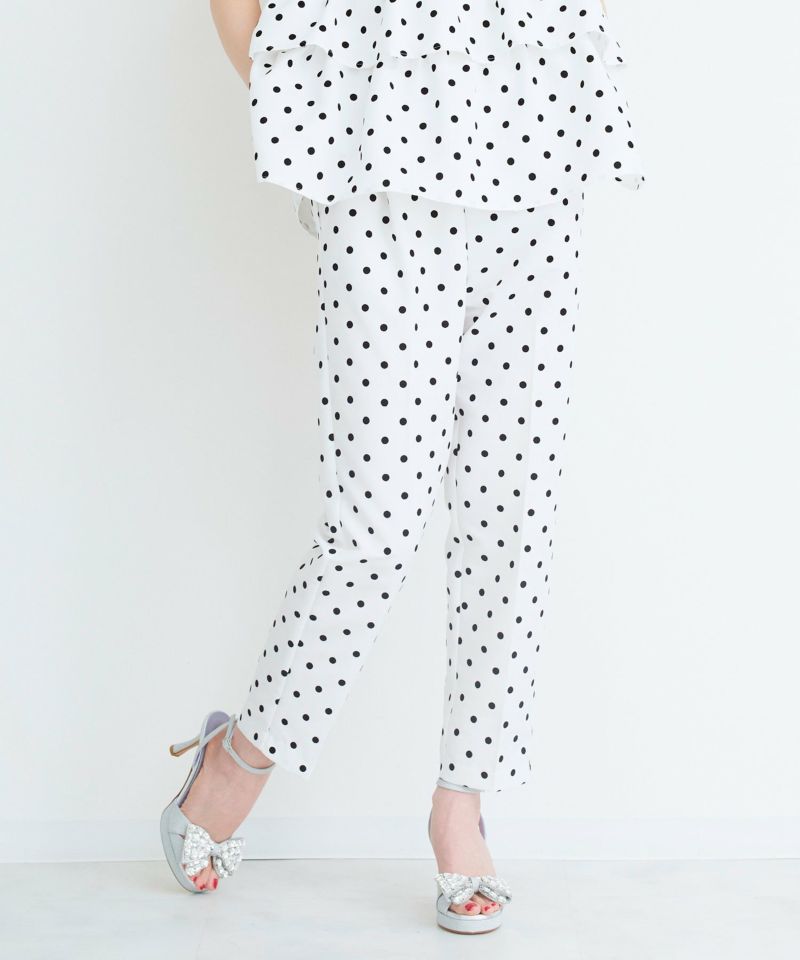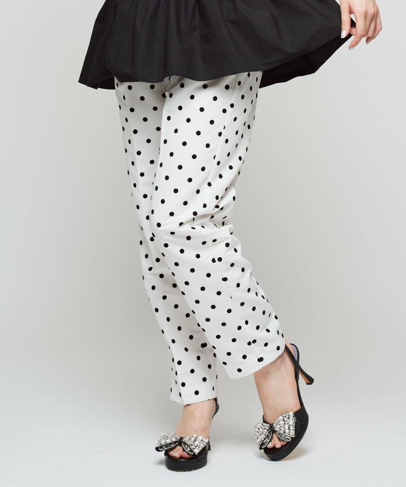 【PICCIN】心にフィットし、人を幸せにする洋服を。心まで作用するような洋服でありたいとPICCINは1990年に誕生以来、妥協せずこだわった洋服作りをしているブランド。女性らしさ溢れるドット柄のテーパードパンツ。フロントタックやウエストをゴム仕様にし、 程よくゆとりのあるシルエットにすることで、ストレスフリーに着用できる。Narcissusでは、可愛らしいドット柄にローファーやスニーカーで外したコーディネートもオススメ。【model】H165 B78 H83/156cm/H163 B78 H84
