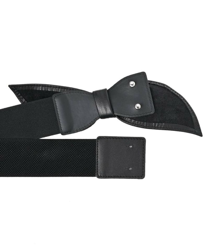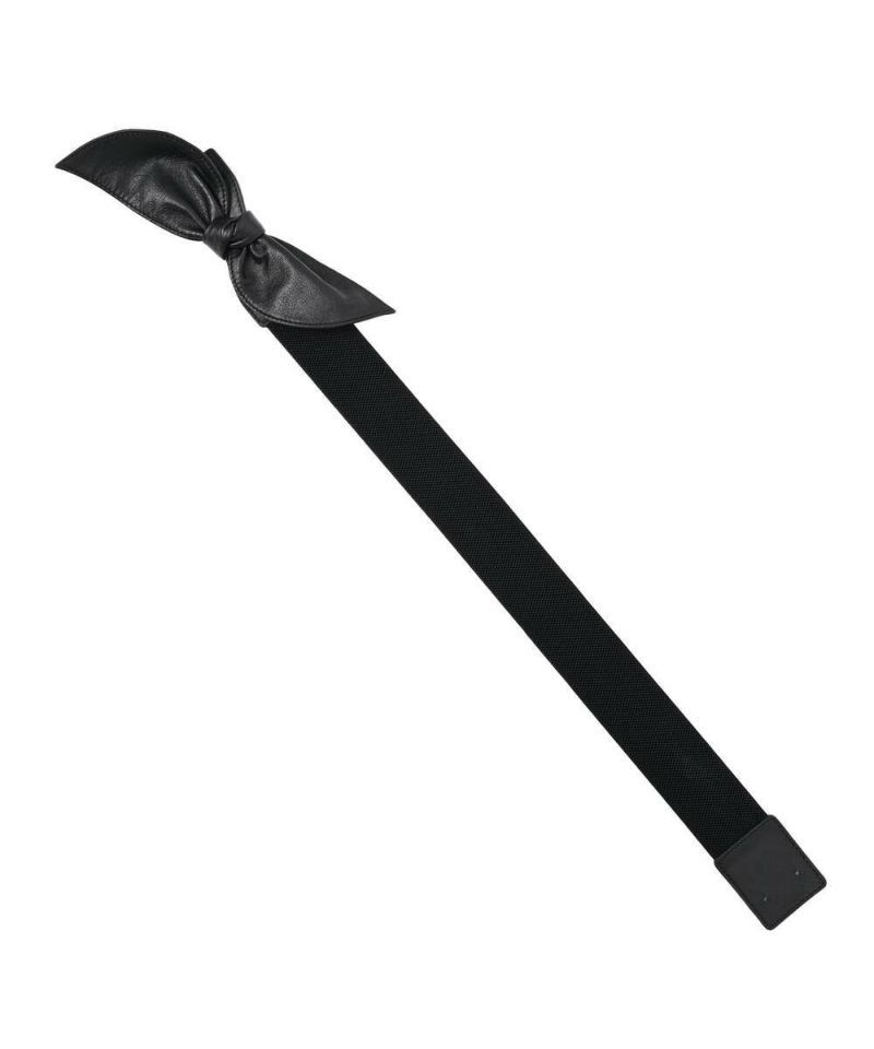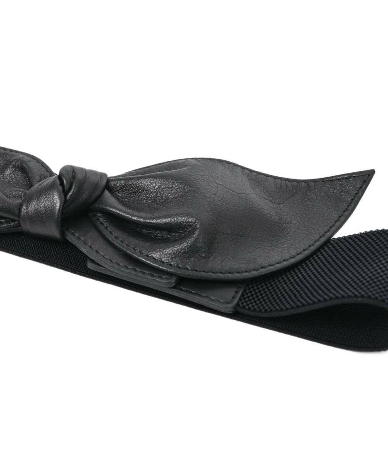 カウハイドレザーを使用したリボンベルト。強くなりがちなレザー素材に、リボンモチーフを取り入れることで可愛らしさをプラス。