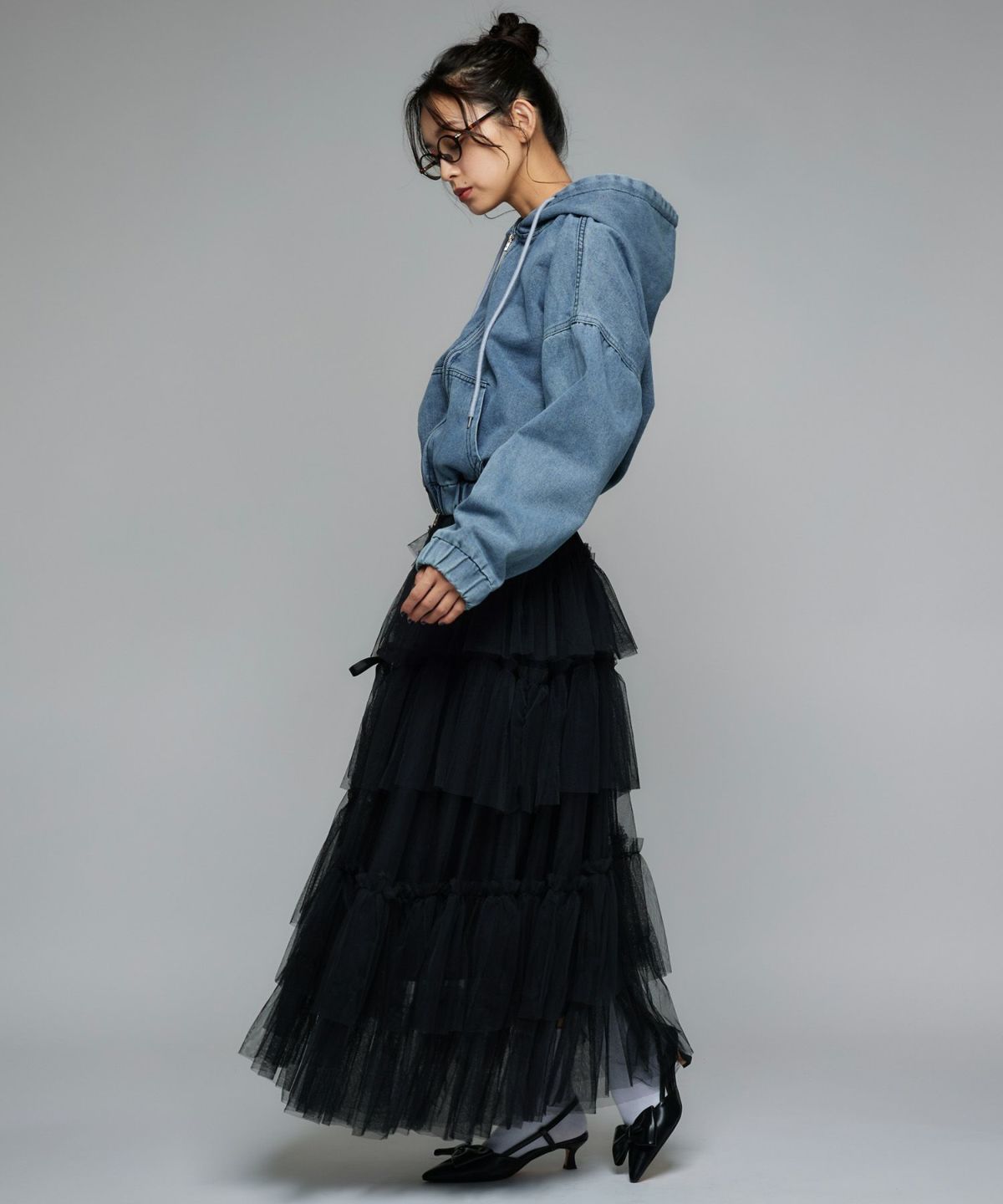 レイヤードデニムスカート