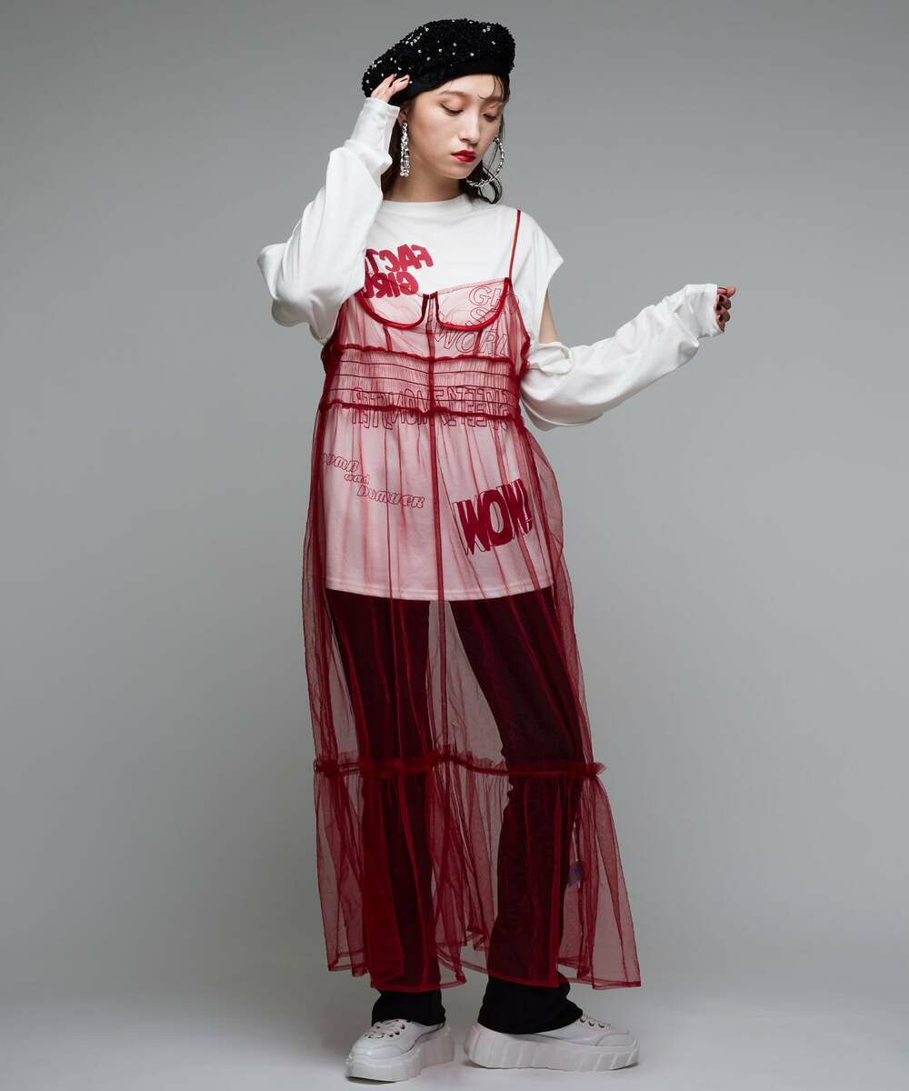 メッシュチュールワンピース