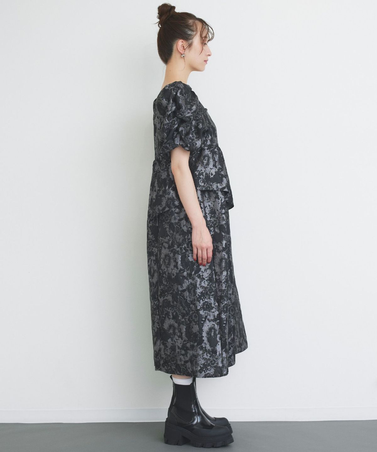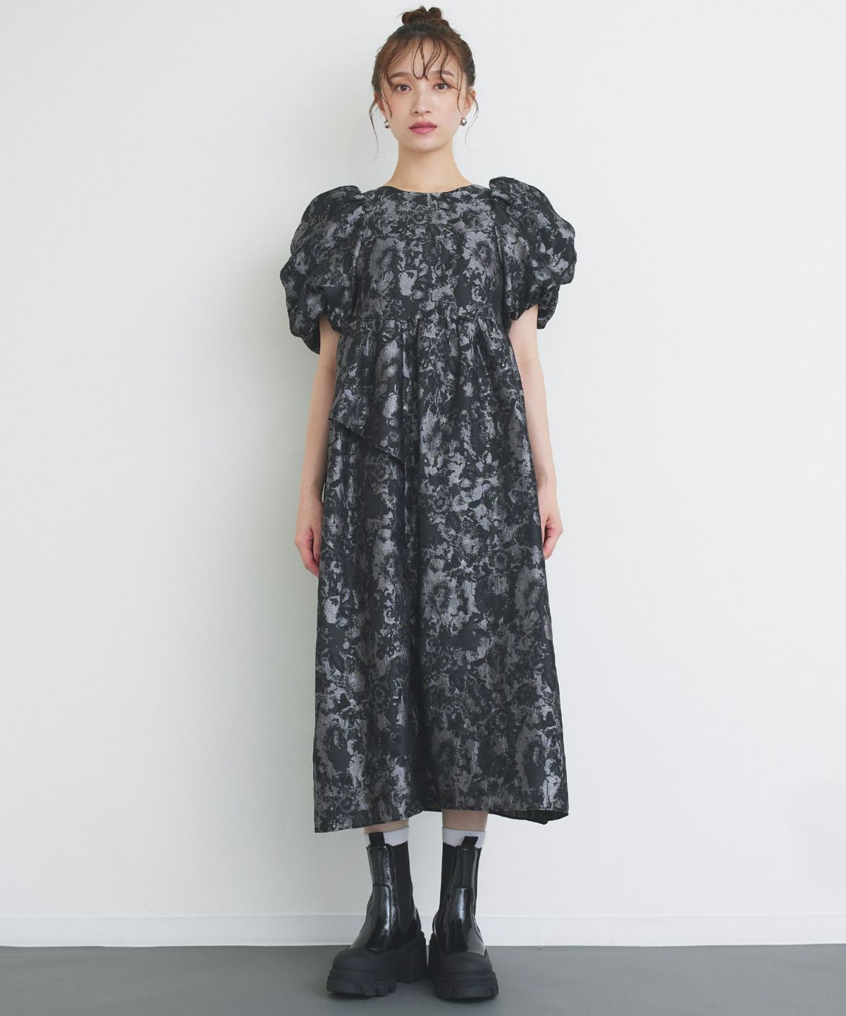 ジャガードパフドレス