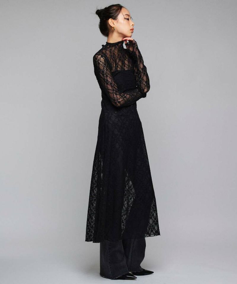 透け感のあるレースが大人の女性に仕上げてくれるロング丈ワンピース。片方サイドに施された大胆なスリットが抜け感を演出。様々なボトムスとのレイヤードもデザインを生かしてくれるので、オケージョンシーンのみならずデイリーコーデにもフル稼働間違い無し。【model】H165 B78 H83