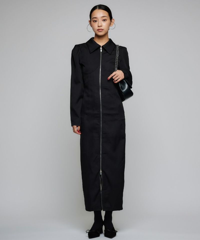 トレンド感のあるダブルジップデザインで、着こなしの幅が広がるロングワンピース。一枚でモードスタイルが仕上がるアイテムです。