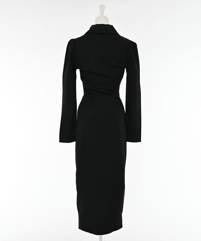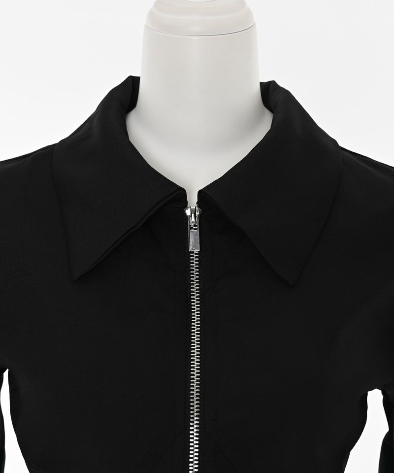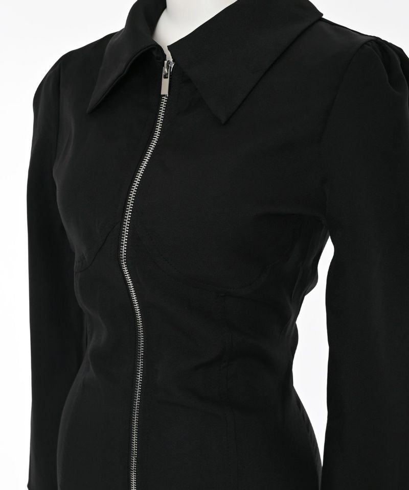 さりげなく映えるビスチェデザイン・後身頃のタックがお洒落度を上げながらスタイルアップ効果を。着脱が簡単で、着こなしの幅が広がるダブルジップがポイントです。洗練された印象のオールブラックにパフスリーブが女性らしさをアピール。