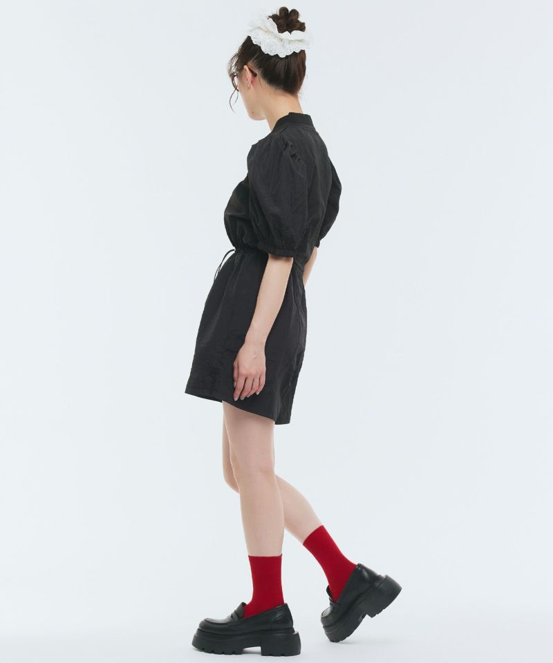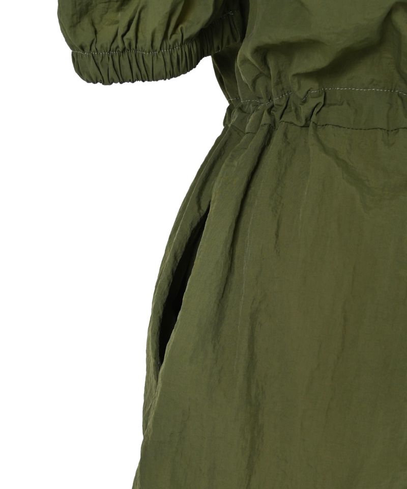 軽やかな素材で、リラックス感があり着心地の良さが魅力のアイテム。ドローコードでウエストを調節することができ、ウエスト周りを程よく引き締めてくれるので、スタイルアップ効果があります。肩に丸みがあるデザインなので、カジュアルすぎないシルエットで、1枚でコーディネートが完成するのも嬉しいポイント。【model】H160 B80 H85