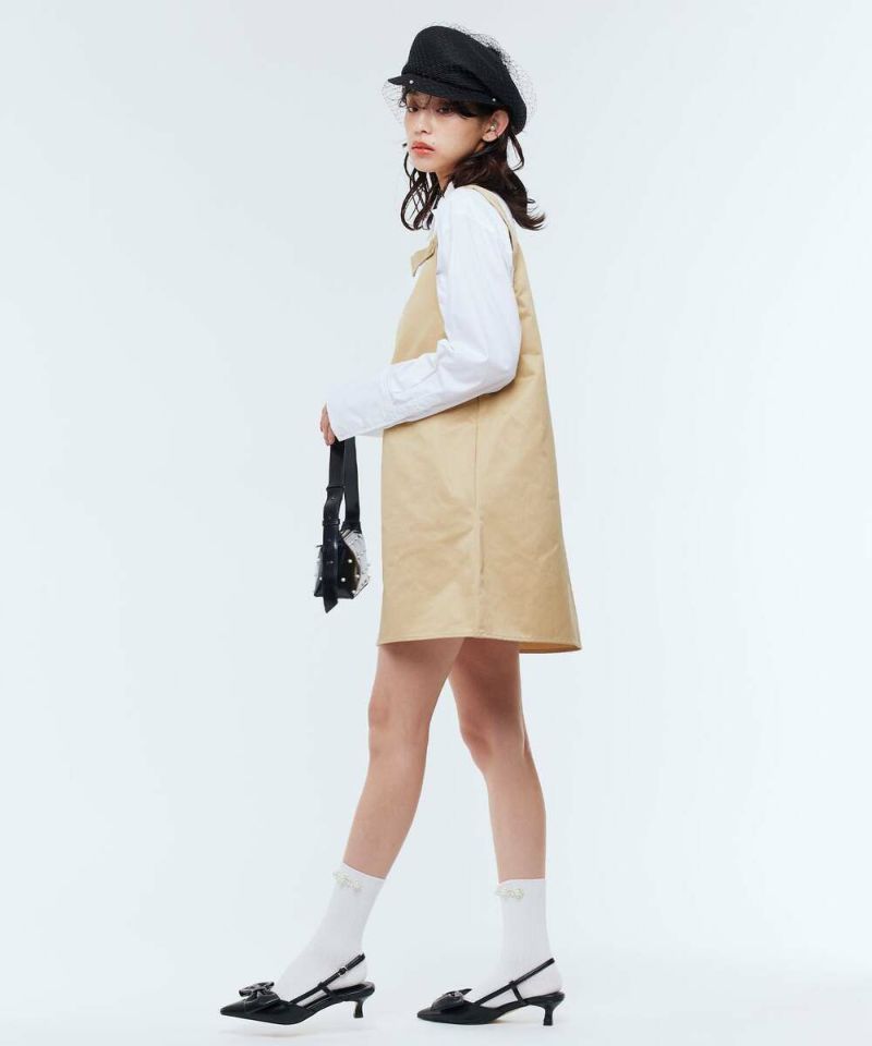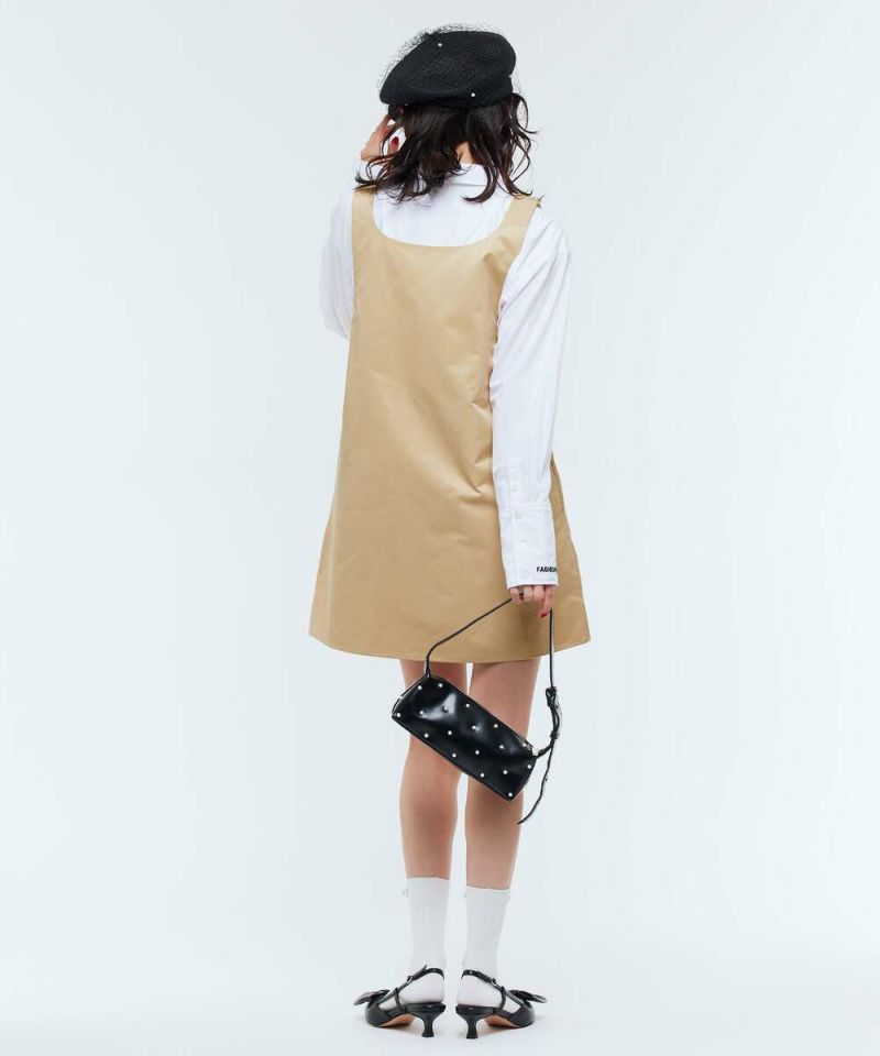 トレンチコートのようなサラッとした質感のミニワンピース。気温に合わせてインナーを変えれば、ロングシーズン着回しが可能。お好みで、前後どちらでも使用できるデザイン。【model】H163 B78 H84