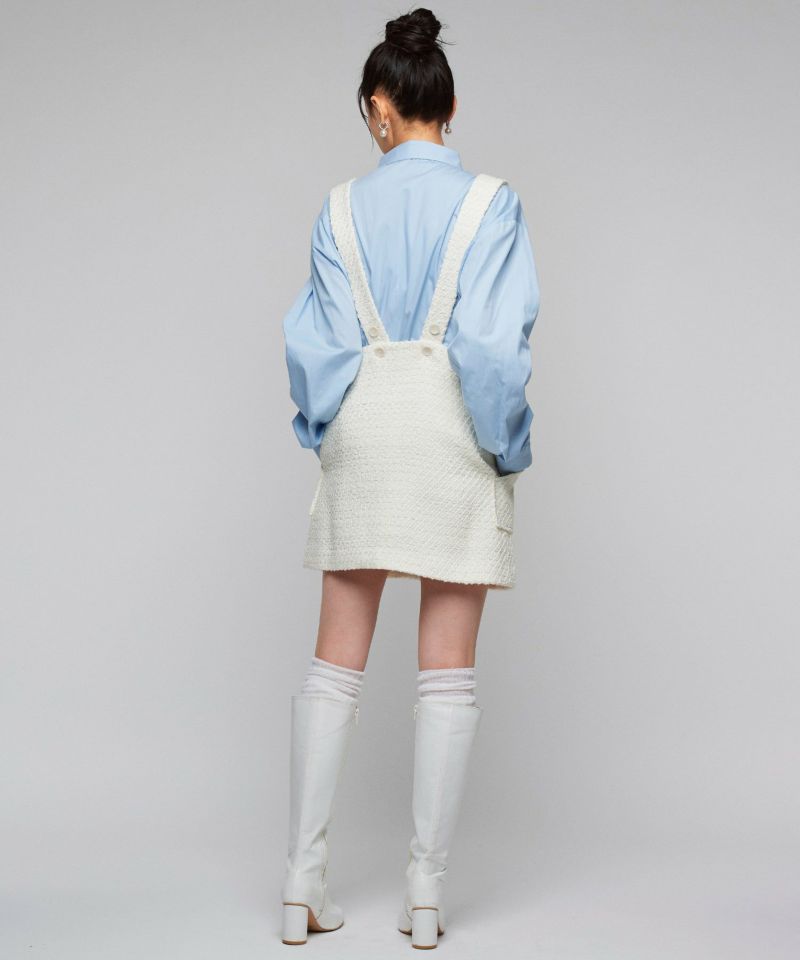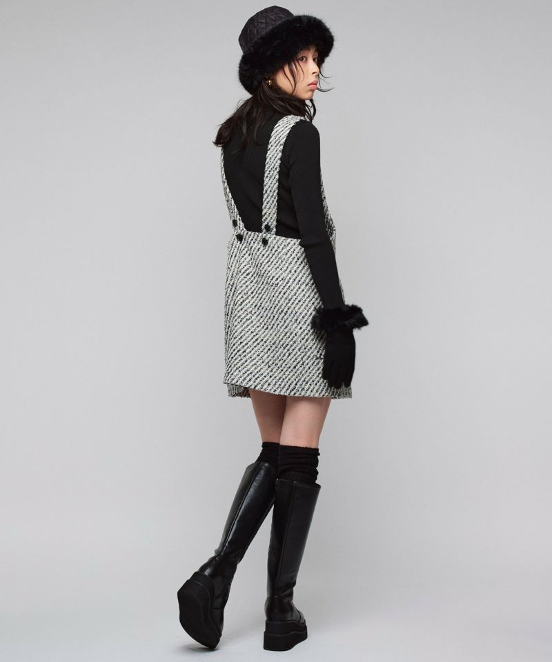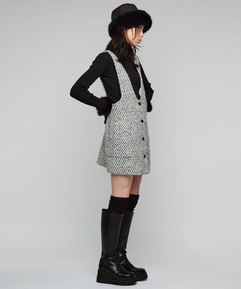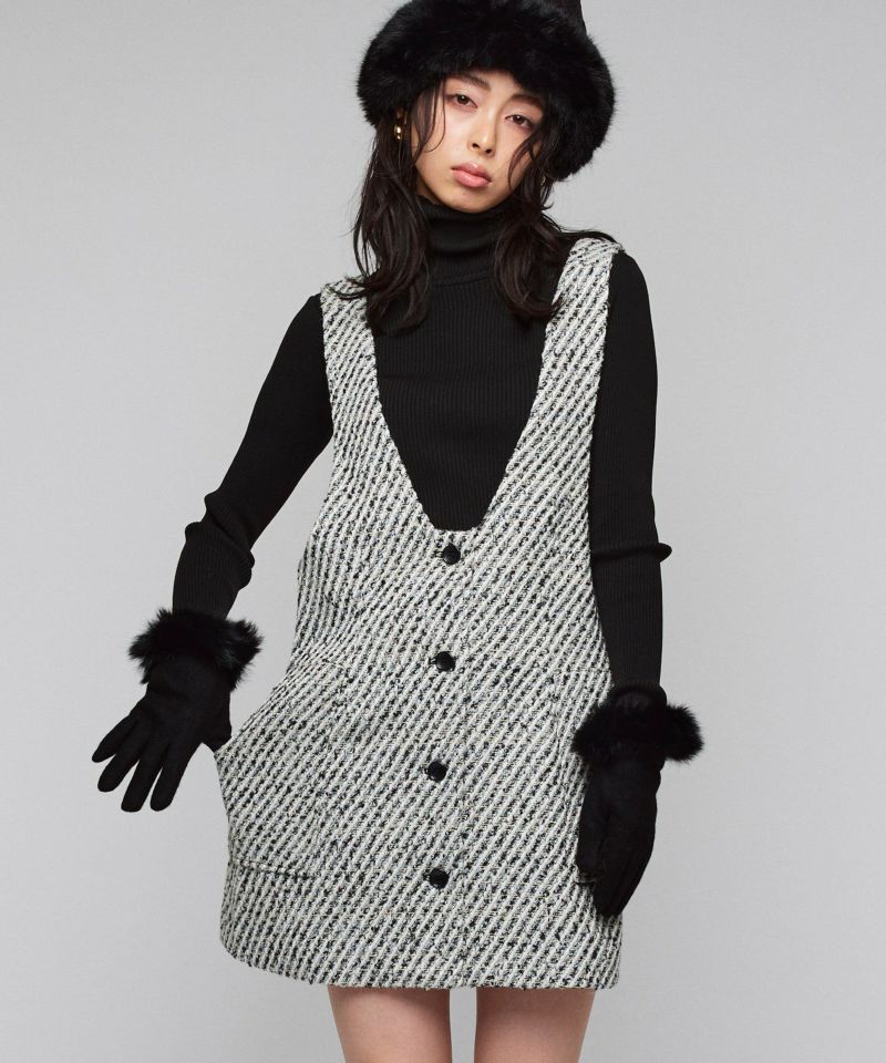 【PICCIN】心にフィットし、人を幸せにする洋服を。心まで作用するような洋服でありたいとPICCINは1990年に誕生以来、妥協せずこだわった洋服作りをしているブランド。ラメ糸を織り交ぜた立体感のあるツイード素材がシーズンムードを高めるワンピース。フロントボタンと大きいポケットがメリハリのある1枚。ブラウスやニットなどの様々なインナー次第で幅広く活躍。【model】H165 B78 H83