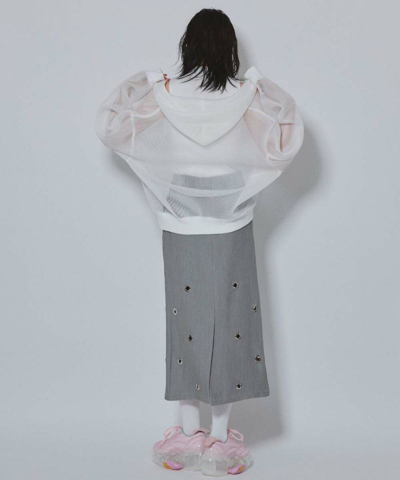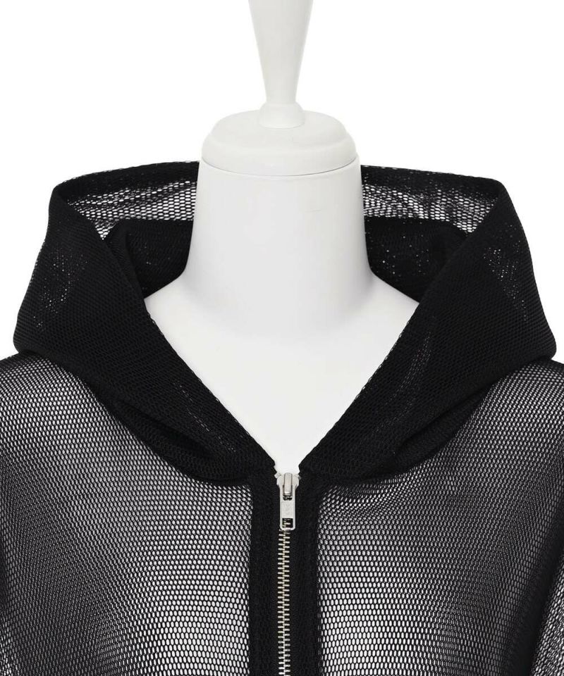 ハリ感のあるボンディング素材を使用したメッシュデザインのジップパーカー。ゆとりのあるサイズ感がレイヤードスタイルにピッタリで、キャミソール・タンクトップ、肌寒い時期にはロングTシャツ・ニット等、インナー次第でロングシーズン活躍できるアイテム。袖口と裾にリブを採用することで高級感を。【model】H156H165 B78 H83