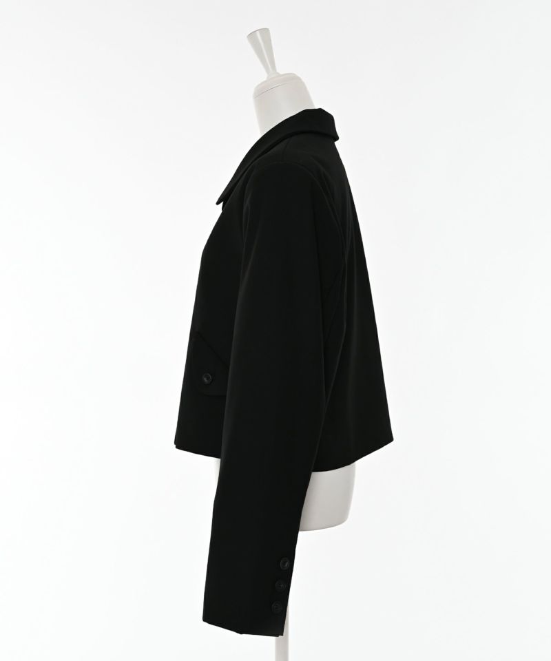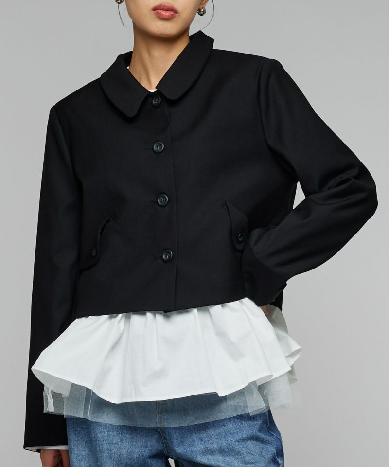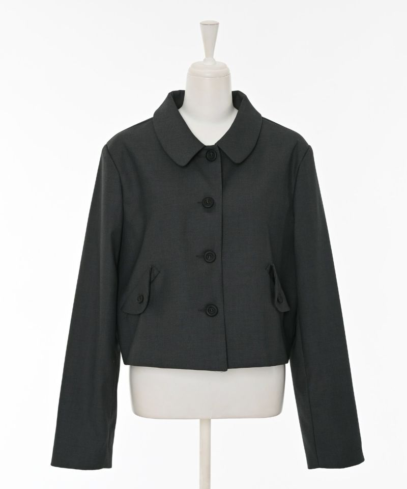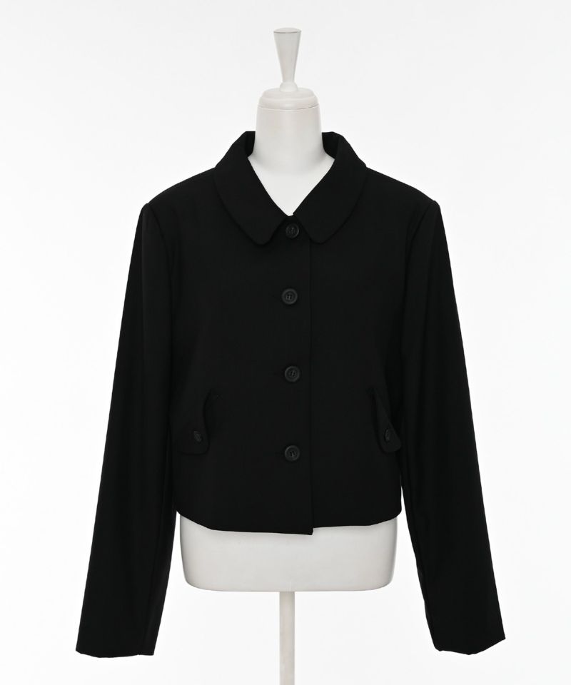 シンプルながら丸襟が顔まわりをやさしく引き立ててくれるので、洗練された印象ながら堅くなりすぎないデザインがポイント。コンパクトなシルエットがコーディネートを綺麗にまとめてくれ、着るだけで大人の落ち着きと華やかさを演出します。