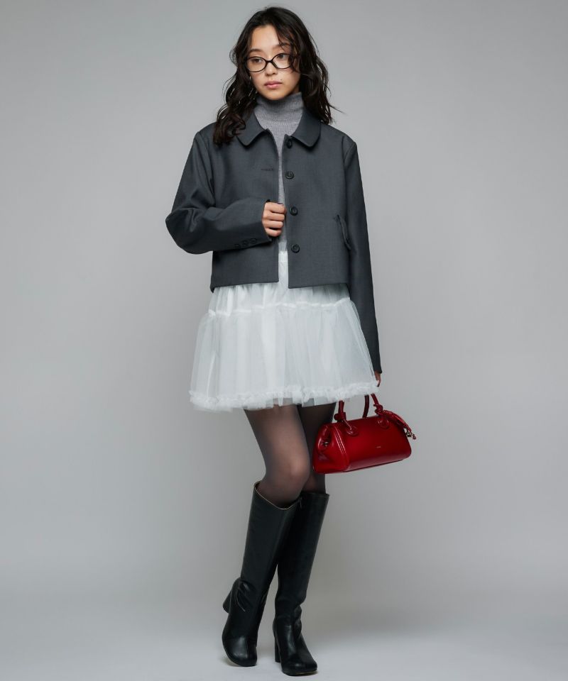 デニムやワイドパンツに合わせると、程よくカジュアルダウンしたスタイリングに。スカートやミニボトムと合わせて、可愛らしい可憐な印象をプラスするスタイリングもおすすめ。スカートにもパンツにも合わせやすい万能さが魅力で、普段着にも取り入れやすいアイテム。