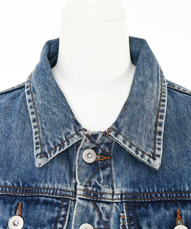 女性らしさを演出するコンパクトなサイズ感のデニムジャケット。ヴィンテージライクな風合いとステッチデザインがポイント。カジュアルなスタイルはもちろん、ワンピースやスカートと合わせたフェミニンスタイルにもオススメ。肌寒い季節にはインナーとしても着用できるのでロングシーズン活躍するアイテム。