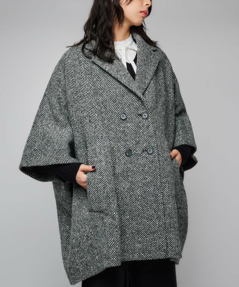 丸みのあるフォルムが特徴のデザイン。肩を落としたゆるやかなのラインが、軽やかに体を包み込むようなシルエットが魅力。シンプルなフロントデザインで、ヘリンボーン柄を引き立てたシックな印象に。着るだけで立体感のあるバランスが仕上がります。