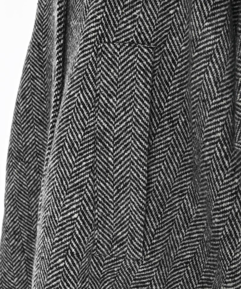 上質なヘリンボーン織りの生地を使用。細かな柄が全体に深みを与え、カジュアルになりすぎず大人っぽく着こなせる仕上がりに。程よい厚みがありつつ、柔らかな風合いでシーズンライクな雰囲気を高めます。