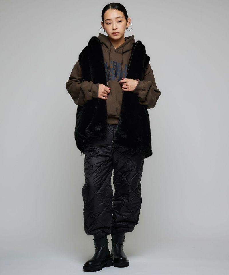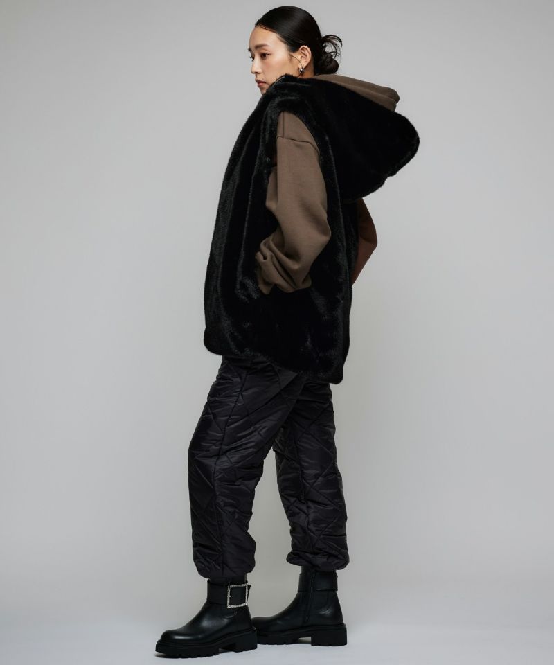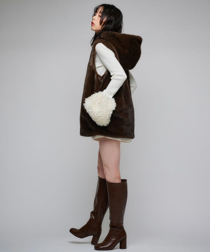 シーズンムードを一気に高める、ふわふわの素材感が可愛らしいファーベスト。落ち着いた大人な印象のカラー展開で、大きめのフードが羽織るだけでこなれ感をプラスしてくれます。