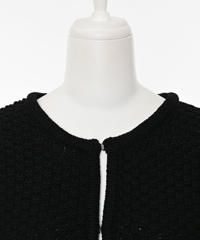 肉厚なニットで仕立てたカーディガンに、フェイクファーをドッキングした華やかな一枚。袖の裾にかけてふんわりと広がるシルエットが、女性らしいやわらかさを演出し、ノーカラーのデザインが顔まわりをすっきりと見せます。フェイクファーはスナップボタンで取り外し可能で、ご自宅で手洗いが出来るためお手入れしやすいのも魅力。留め具にはホックを採用し、フロントラインをすっきりと仕上げました。羽織るだけでスタイリングを華やかに引き立ててくれる、存在感のあるアイテムです。