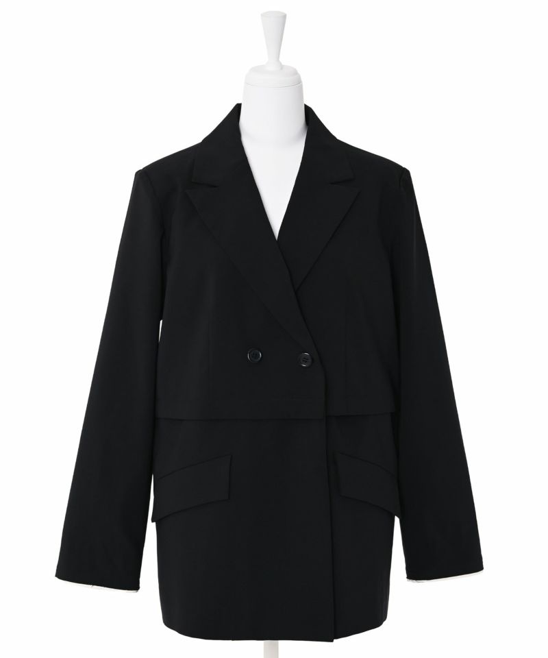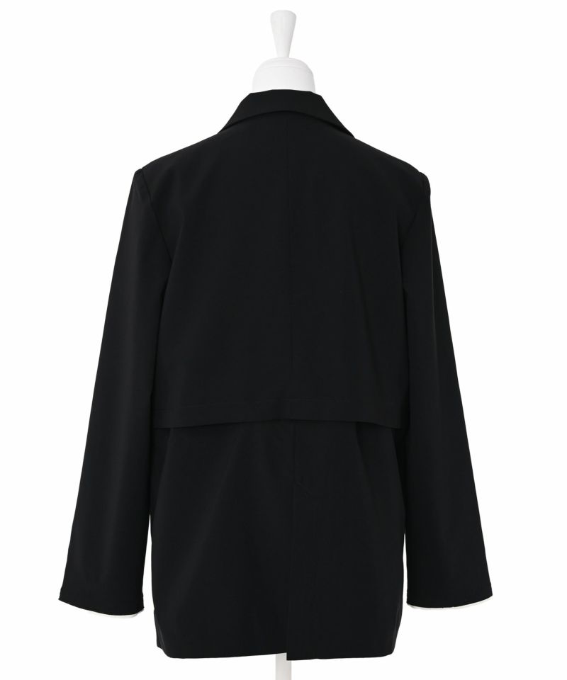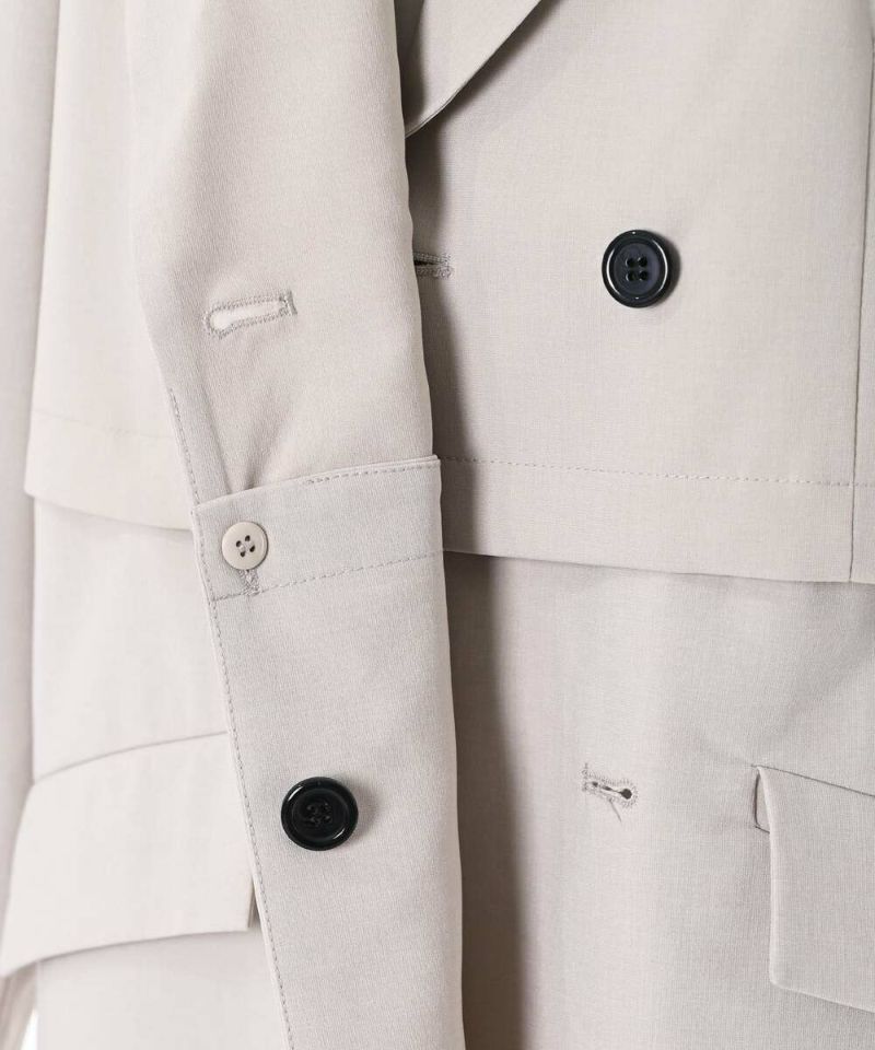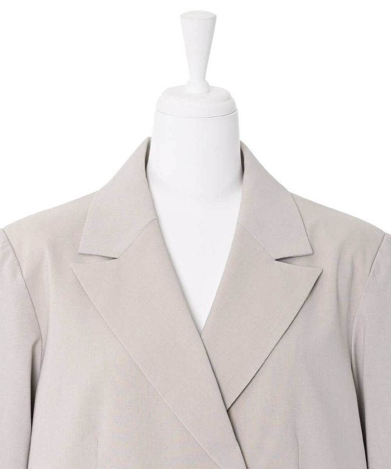 ボタンの取り外しで、ロング丈とショート丈の2WAY仕様で着用可能なテーラードジャケット。型崩れしにくい薄めの肩パッドが入っており、オケージョンスタイルはもちろん、普段使いもしやすい着回しの効くアイテム。国産の同素材を使用したベルトパンツとセットアップコーディネートがオススメ。