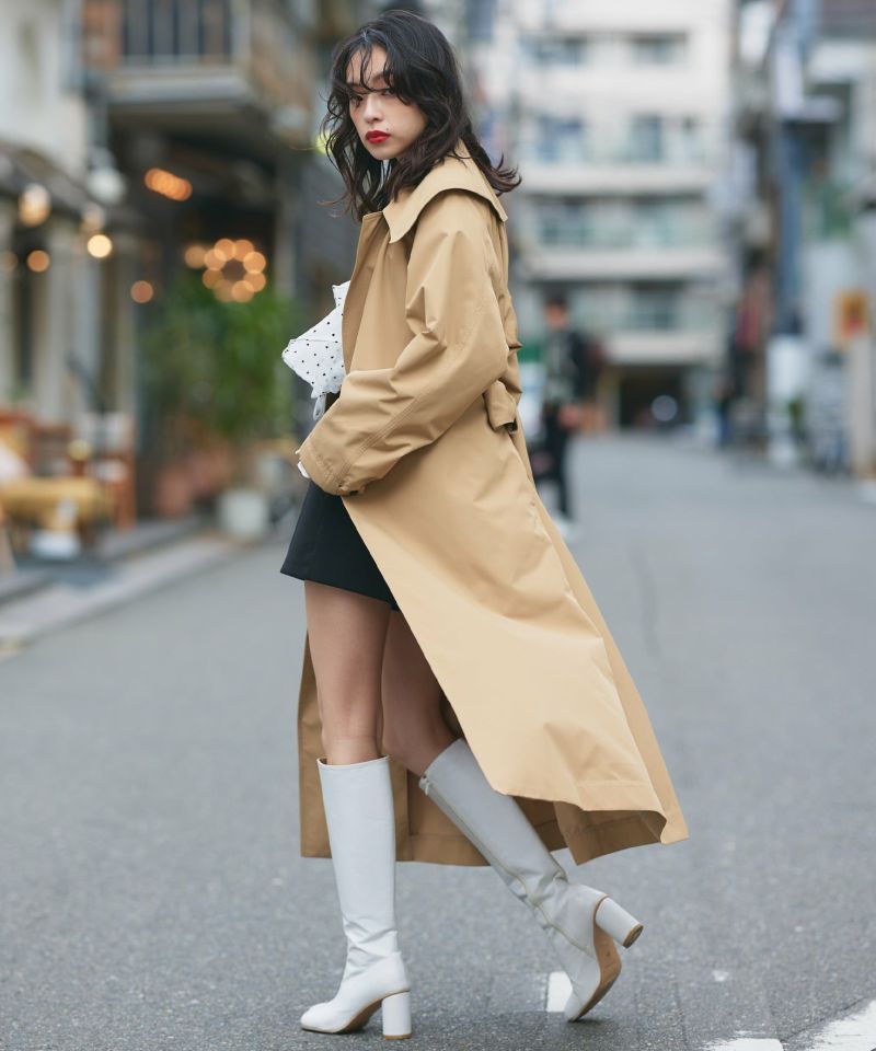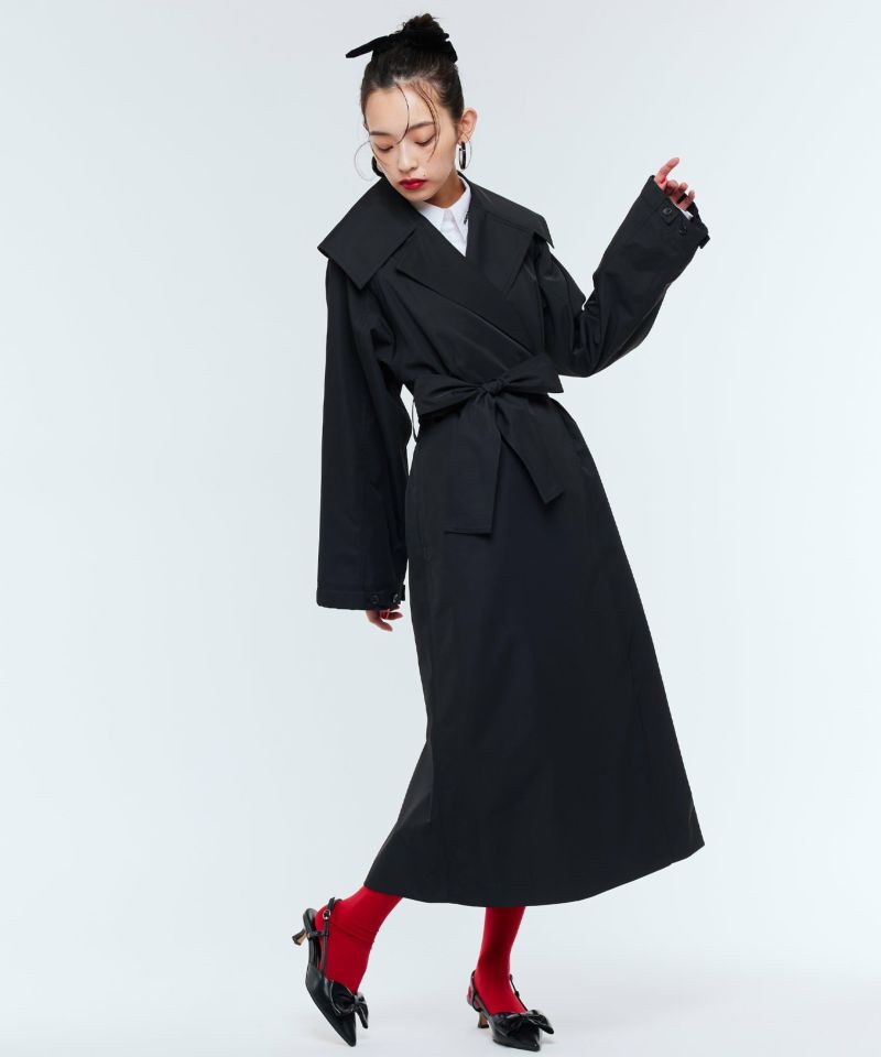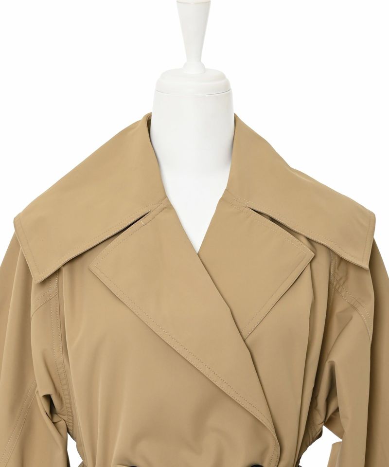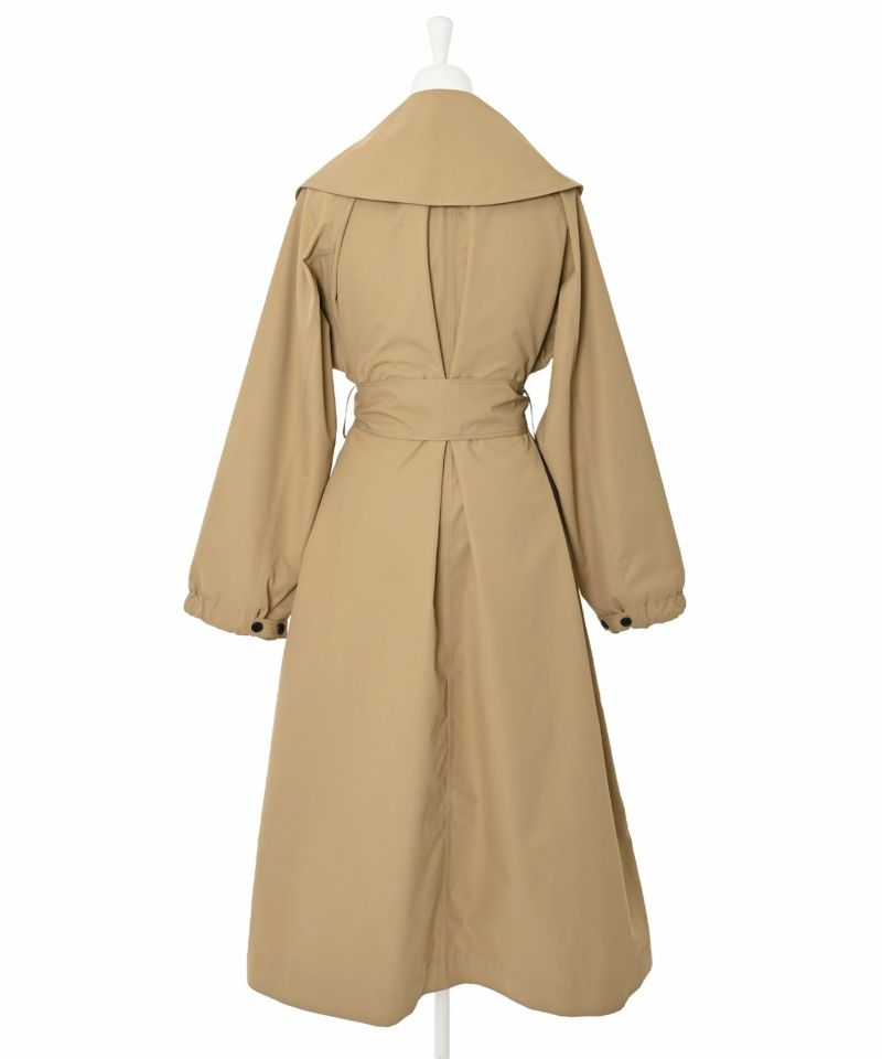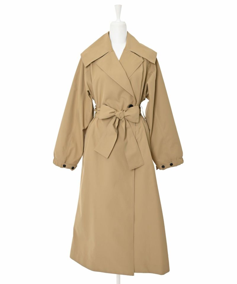 【PICCIN】心にフィットし、人を幸せにする洋服を。心まで作用するような洋服でありたいとPICCINは1990年に誕生して以来、かなりじっくりこだわった洋服作りをしているブランド。トレンド感溢れる大人のビッグカラートレンチコート。しなやかな風合いで適度にハリ感のあるツイル生地を使用し、洗練された印象と上品見えする1着に。程よくゆとりのある身幅や袖幅+ラグランスリーブで楽な着心地。ビッグカラーをプラスする事で一気にトレンド感のあるスタイルが叶い、小顔効果も期待。また、ベルトループ位置も高めなので、スタイルアップ効果にも。袖口はボタンの留める位置によって立体感がプラスされ、また違った雰囲気を楽しめるアイテム。【model】H163 B78 H84