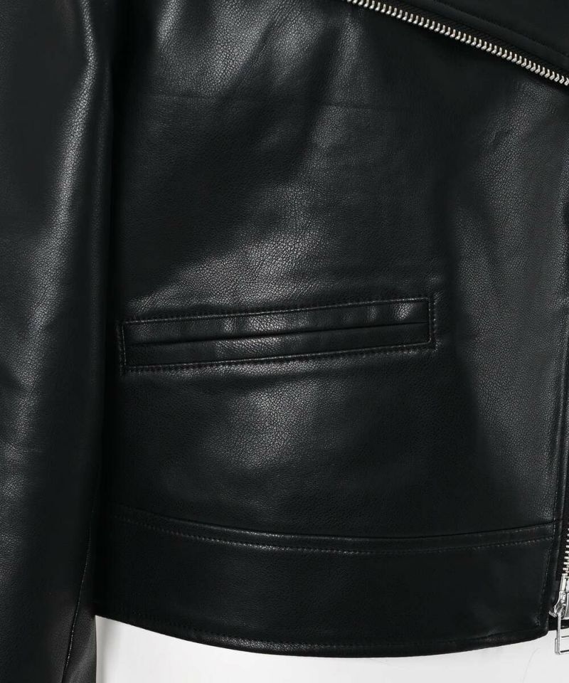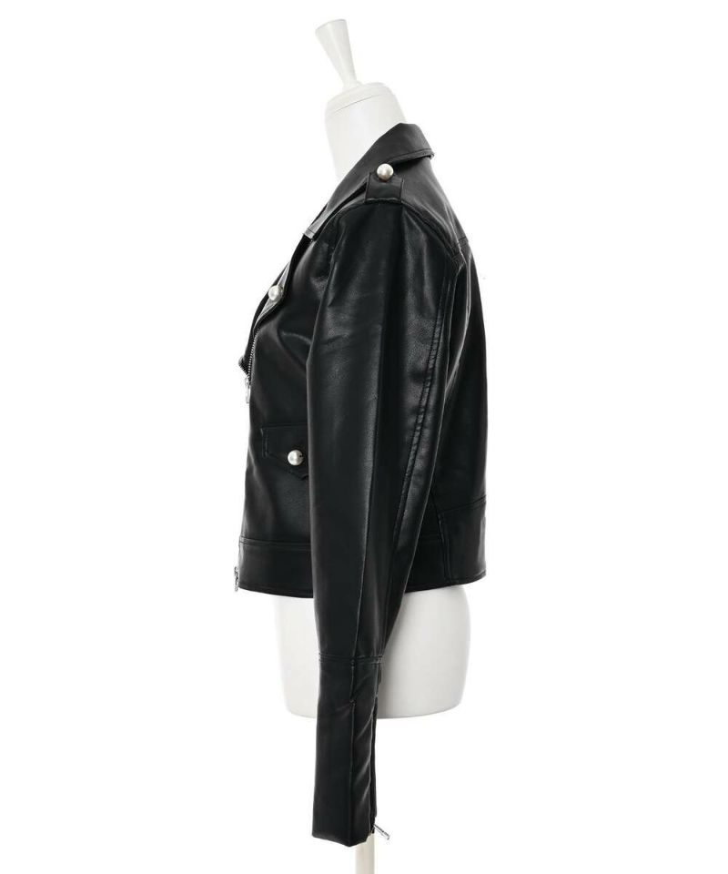 【PICCIN】心にフィットし、人を幸せにする洋服を。心まで作用するような洋服でありたいとPICCINは1990年に誕生以来、妥協せずこだわった洋服作りをしているブランド。柔らかなフェイクレザーを使用したライダースジャケット バランスの取りやすいコンパクトなサイズ感にモードなダブル仕様。 フロントファスナーはダブルファスナーでお好きな位置で開閉可能。 ラペルやポケット、エポレットなどのボタンはPICCINらしさのあるパールボタンを採用。