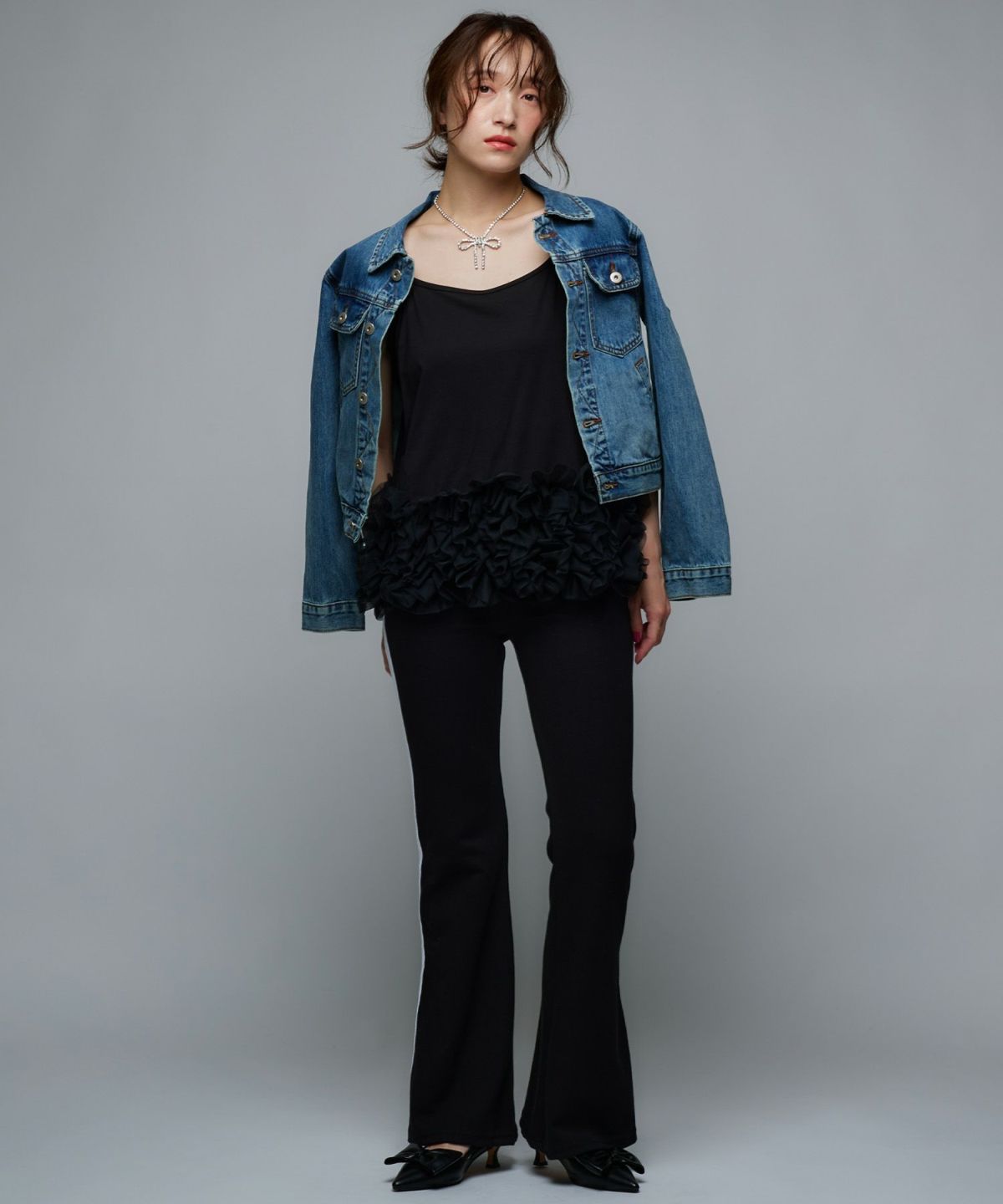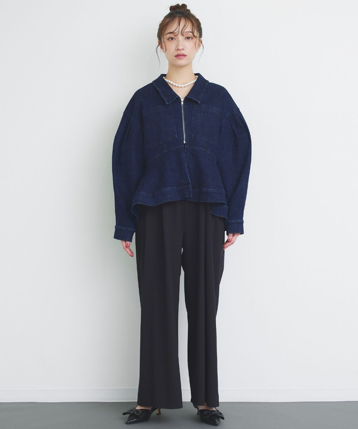 ペプラムデニムジャケット