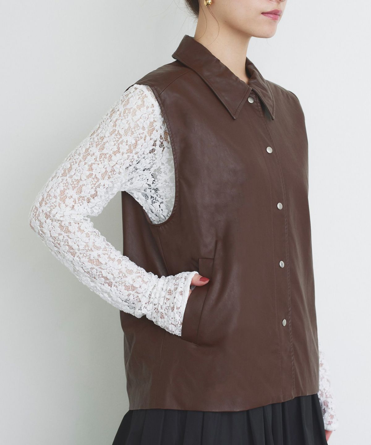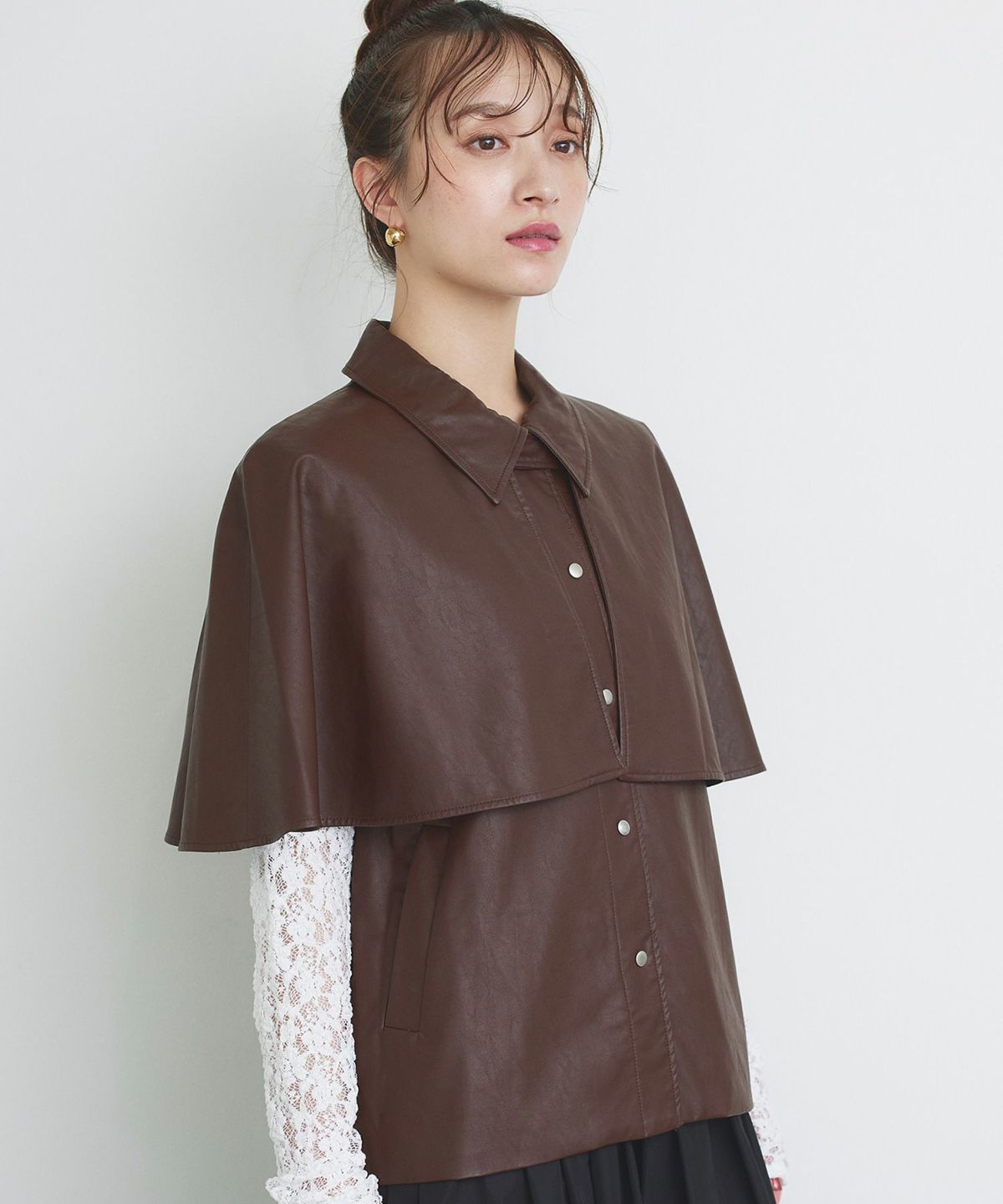 フェイクレザーケープベスト
