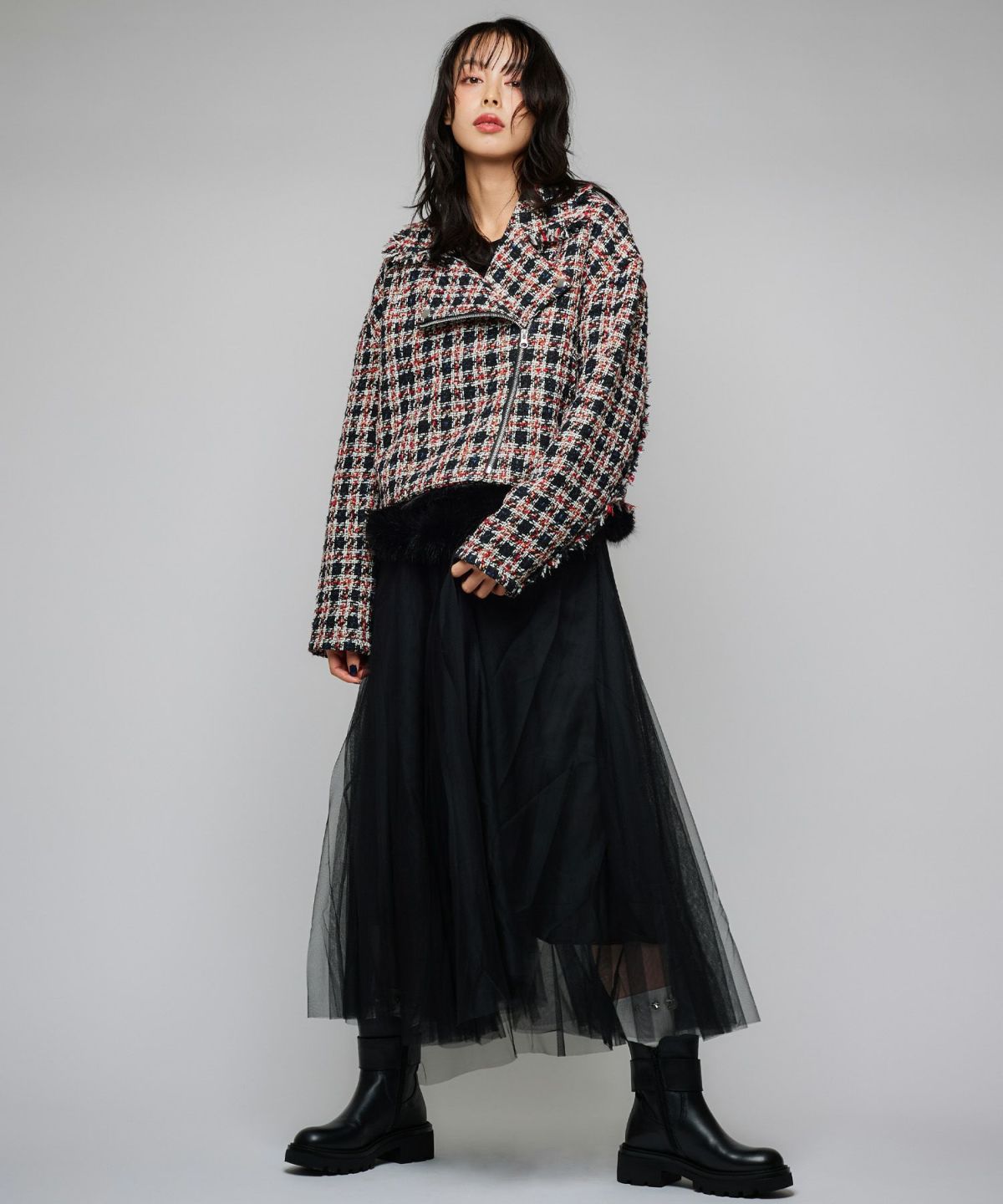 ツイードライダースジャケット