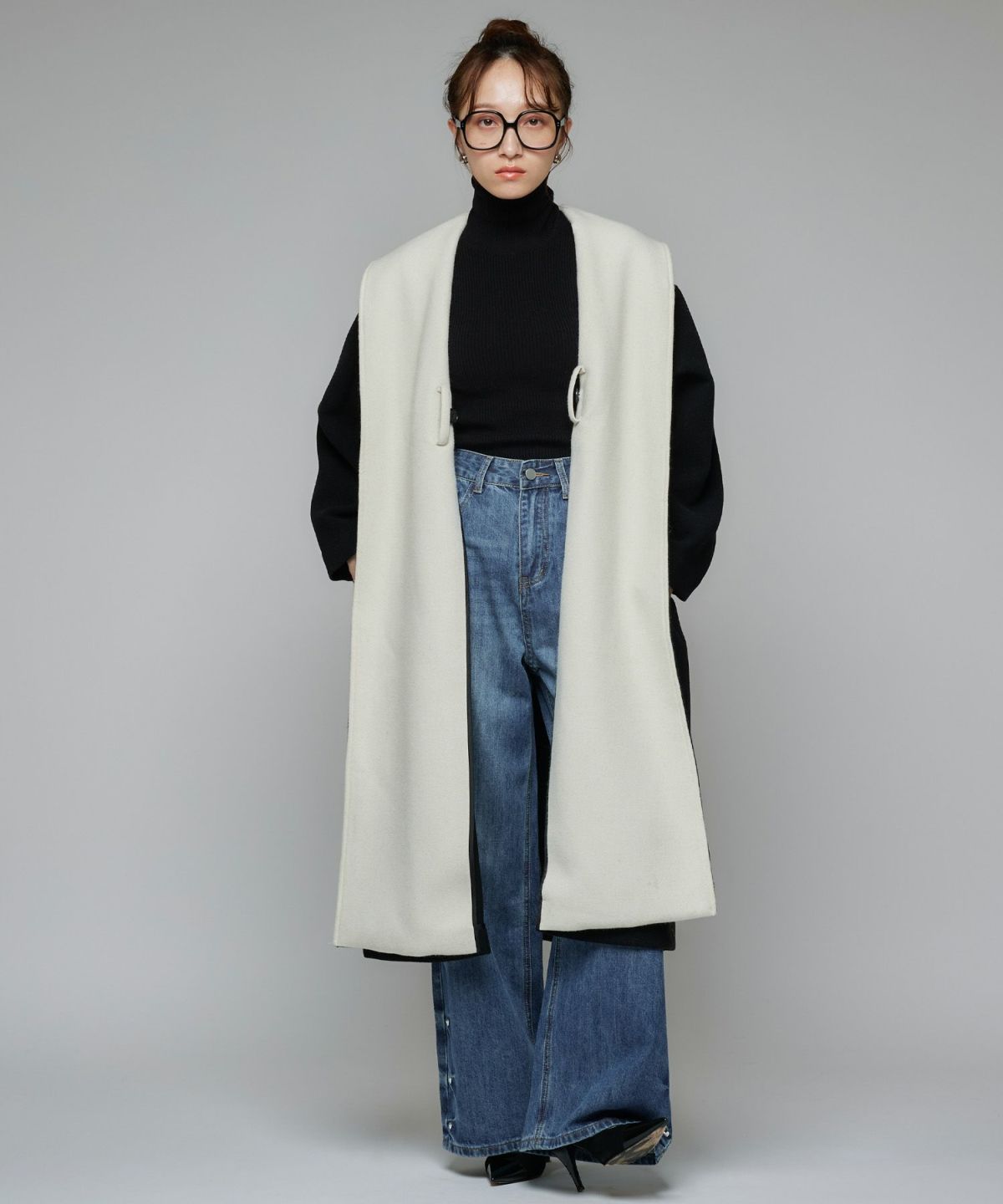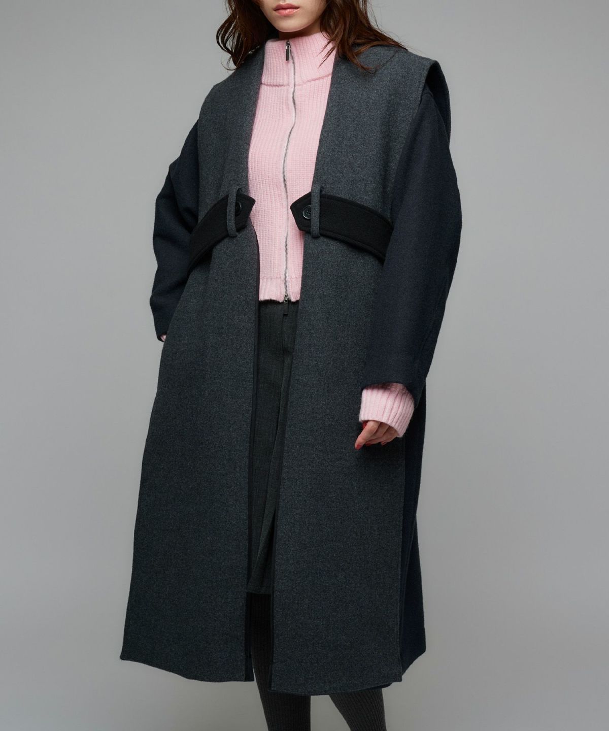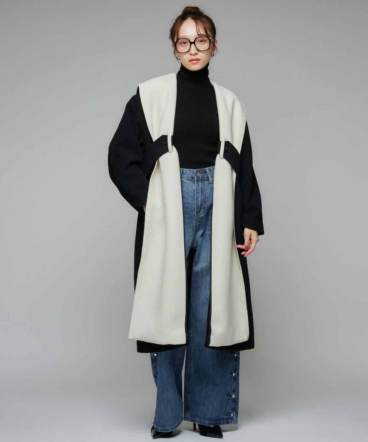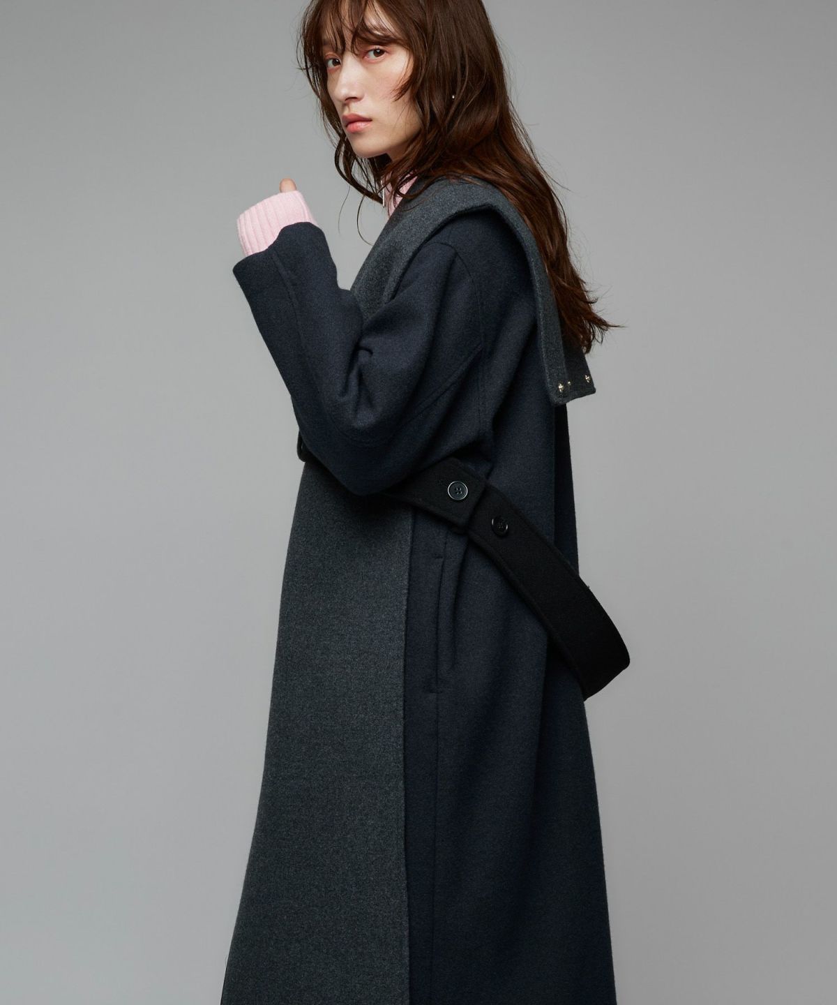 バイカラーロングコート