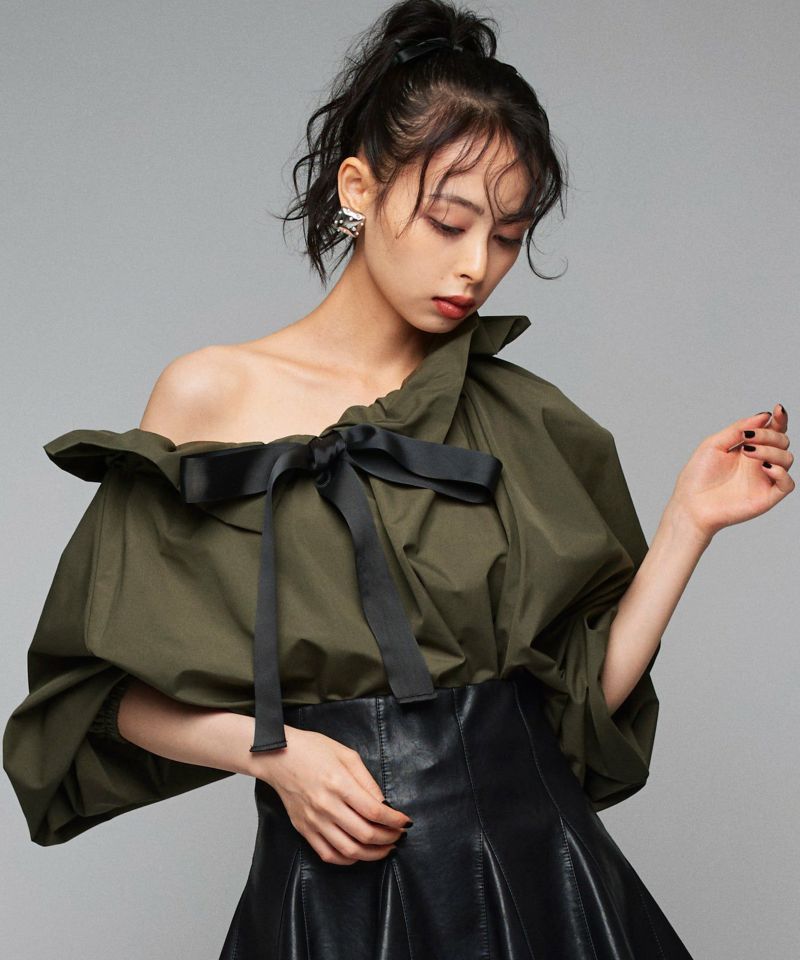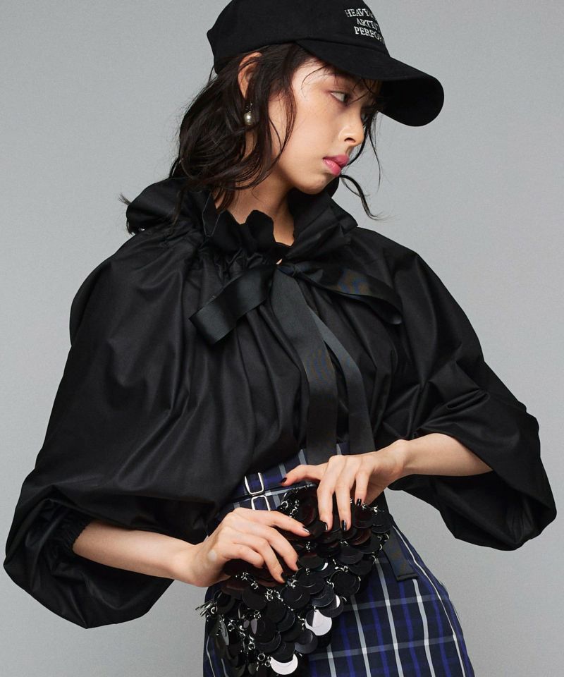 【PICCIN】心にフィットし、人を幸せにする洋服を。心まで作用するような洋服でありたいとPICCINは1990年に誕生以来、妥協せずこだわった洋服作りをしているブランド。グログランリボンの締め方具合で、色んな着こなしが楽しめる魅力のブラウス。布帛生地をたっぷりと使用し、ゆったりしたラグランスリーブやミニマムな着丈で 存在感のあるトレンドライクな一枚。【model】H165 B78 H83
