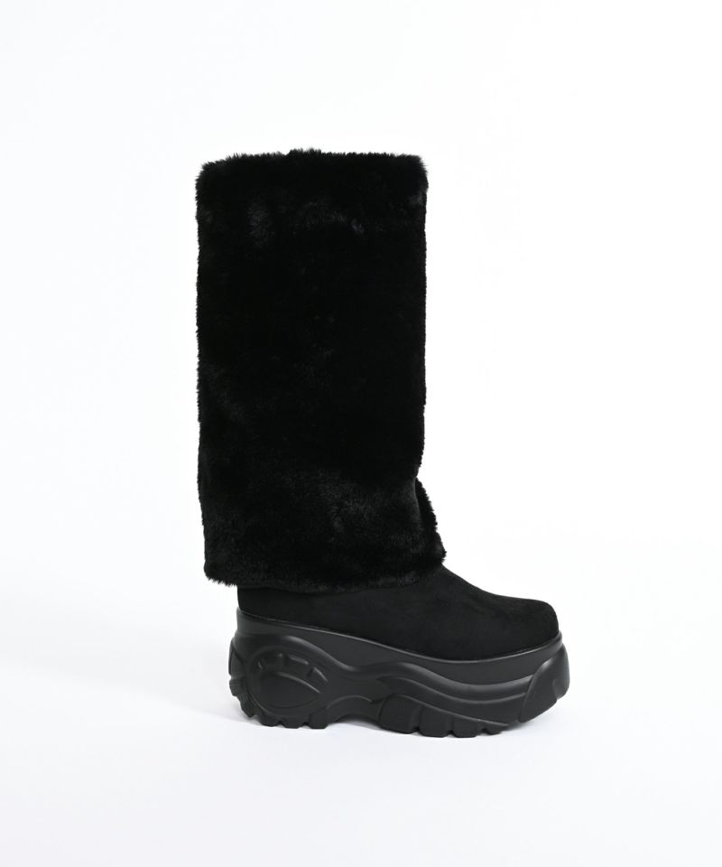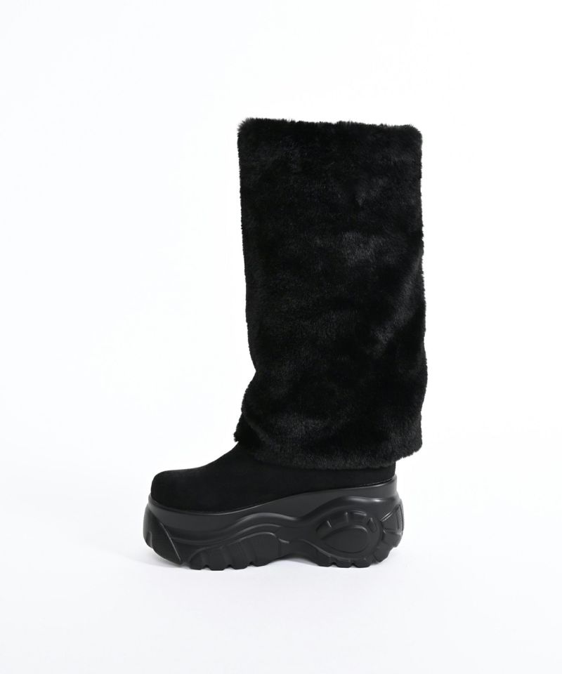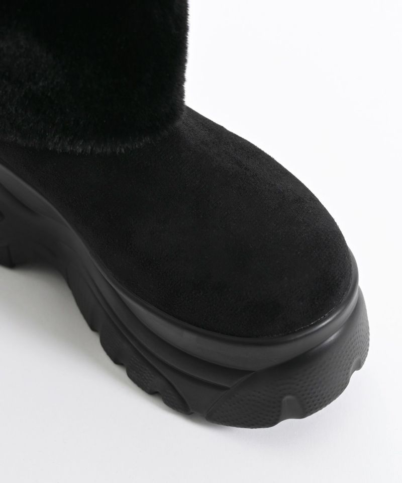 厚底デザインが脚のラインをすっきりと見せ、スタイルアップを叶える一足。ボリュームのあるファーがシーズンムードを高め、コーディネートに華やかさをプラスします。サイドファスナーのないデザインながら、広めに設計された履き口で脱ぎ履きもスムーズ。機能性とデザイン性を兼ね備えた、シーズンの主役になるブーツです。