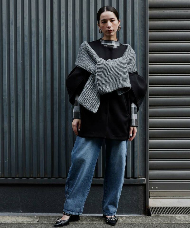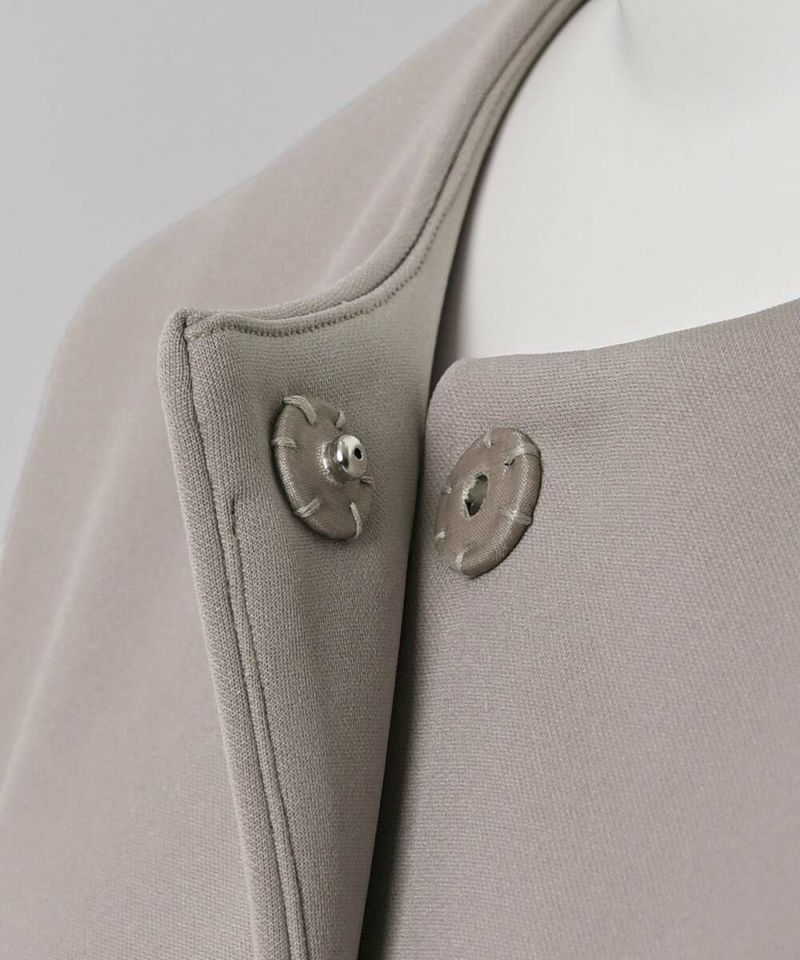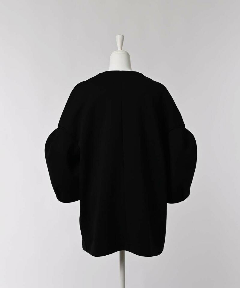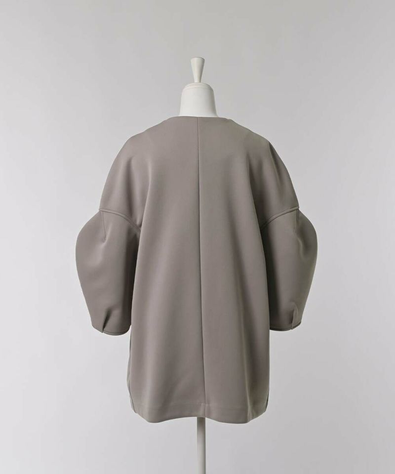 ノーカラーデザインとハリ感のあるボンディング素材が、綺麗めな印象のライトコート。ボリュームのあるお袖に、身頃はスッキリとしたデザインを採用することで、メリハリのあるシルエットに仕上げました。インナーを選ばずに羽織れる、ゆとりのあるサイジングもポイント。レイヤードスタイルを楽しめる七分袖を採用し、軽量で持ち運びしやすいので、気温差のある時期にも活躍するアウターとなっております。両サイドには、深めのポケット付きで機能性も抜群◎デイリー使いにはもちろん、フォーマルシーンにもピッタリで重宝するアイテムです。モデル身長:157cm/H160 B80 H85