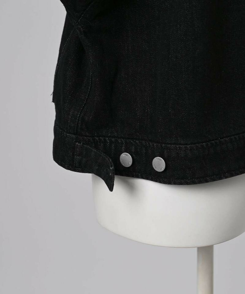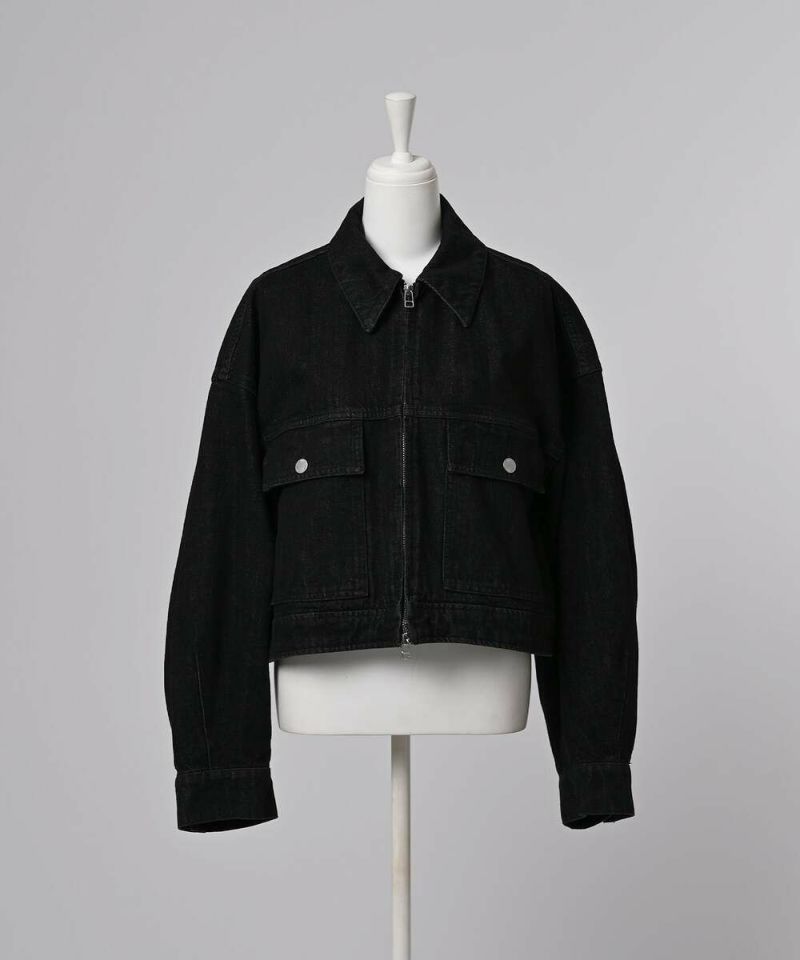 デニムジャケットはカジュアルなイメージが強いですが、程よい張り感と高級感のある生地を採用する事により、綺麗めなアイテムに仕上げる事ができました。やや着丈が短いボックスシルエットが特徴。裾サイドのタックボタンで丸みのあるフォルムへと調整が可能。アレンジ次第で幅広いボトムに合う着回し力の高さも嬉しいポイント。ダブルジップ仕様でバランスも取りやすく、お好みのスタイルで開閉ができるので幅広いコーディネートをお楽しみいただけます。※この商品は多少色落ちする場合がありますのでご注意くださいませ。濡れた状態での放置もお避け下さい。お洗濯の際は単品洗いをおすすめします。【model】H160 B80 H85