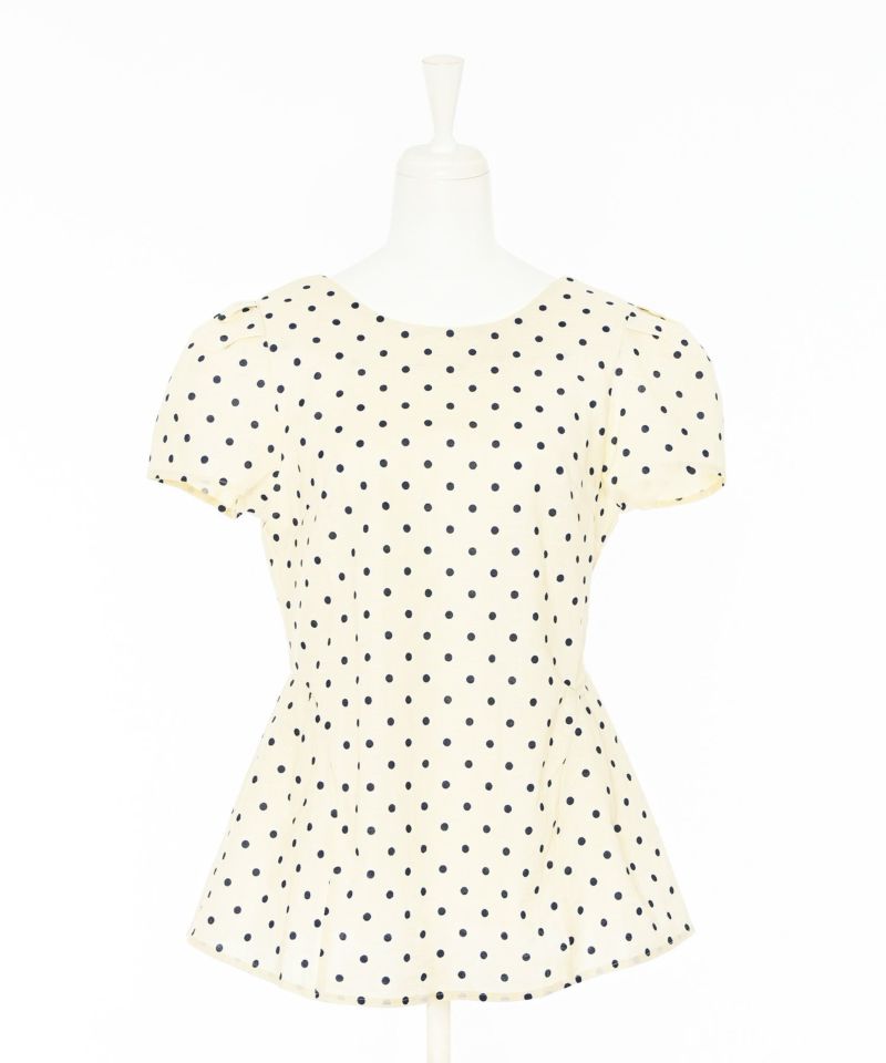 レトロな雰囲気のドット柄を全体に使用したパフトップス。さりげないペプラムシルエットがくびれを強調してくれ、スタイルアップ効果に。パフスリーブと肌見せのバックスタイルが女性らしさをプラス。リネン素材を使用していることで、風通しと着心地の良さ◎着脱しやすいジップアップを採用。