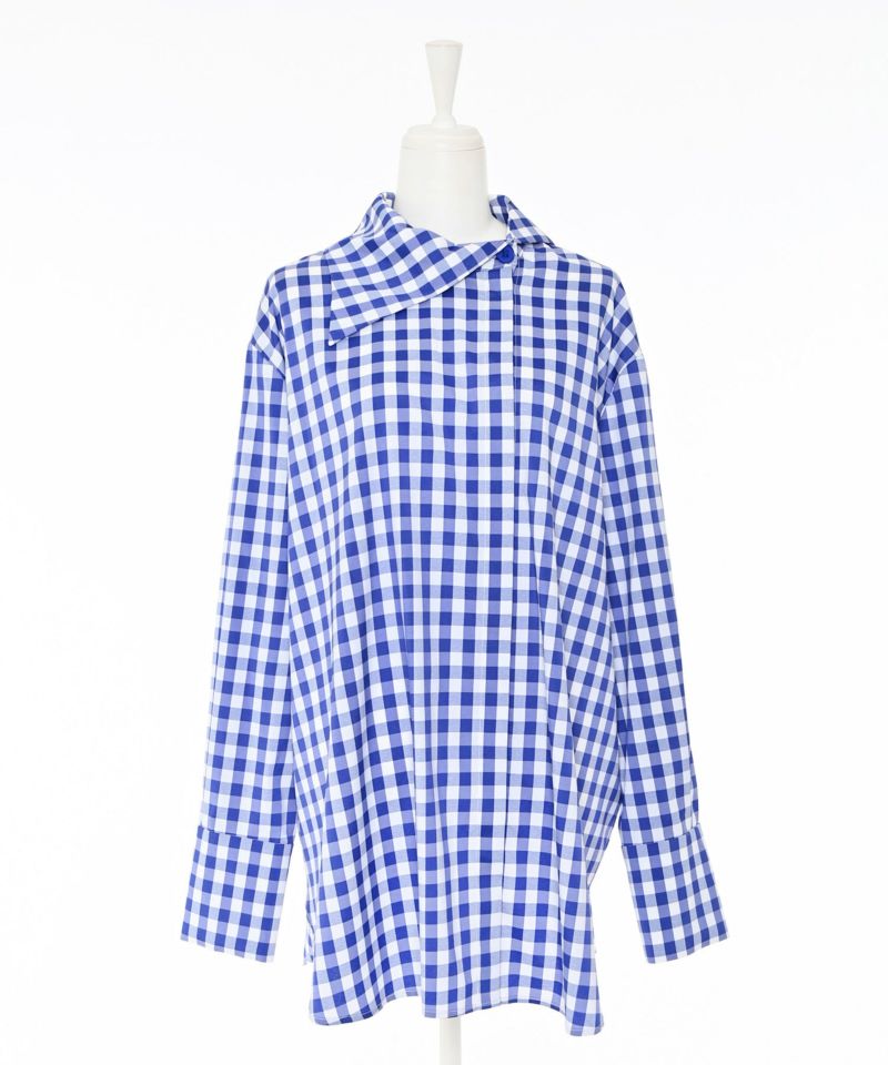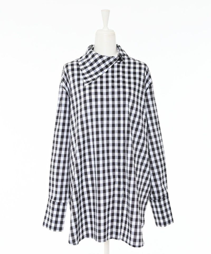 - Buyer design collection - 『リアルに着たいMODE STYLE』をコンセプトに、 バイヤーがデザインやシルエットに拘って企画したアイテム。ミニマルなデザインに拘りを詰め込んだチェックシャツ。シンプルな中にアシンメトリーカラーを取り入れ、程よくゆとりのあるサイジングに設定することで、甘めなギンガムチェック柄でもモードな印象に。ロングシーズン着用していただけるようレイヤードしやすい、軽くて薄めの生地を採用しています。サラッとした着心地良い素材感なので、一枚ではもちろん、ベスト・スウェット・ニット・ジャケットなどから襟元を出してレイヤードスタイルを楽しんでもらえる一枚です。【model】H160 B80 H85 / H165 B78 H83