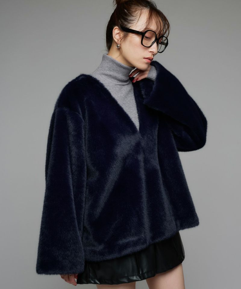 前後2WAYで着られるファートップス。Vネックとクルーネックで雰囲気がガラッと変わり、1枚でコーデの幅が広がる万能アイテムです。