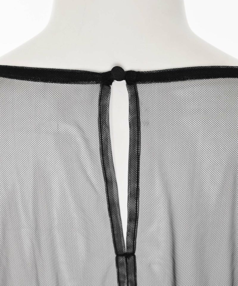 ふんわりとしたボリューム感のあるデザインで、シアーの上品な透け感がナチュラルな肌見せを演出してくれます。袖部分はフリルがウェーブ状に配置されているため、フリルが重なりすぎることがなく、軽やかなシルエットになるのがポイント。着丈に程よい前後差があり、ボトムともバランスが取りやすく、メリハリのある印象に仕上がるデザイン。